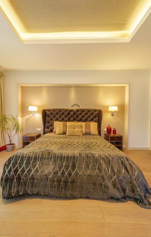 A mediterrán romantika minden részletében tetten érhető: ÁRKÁDOS TERASZOK, rusztikus kőburkolatok, TERMÉSZETES FA, MELEG SZÍNEK, és GAZDAG NÖVÉNYVILÁG. A kertben KERTI TÓ, mediterrán növények, valamint egy KÜLÖNÁLLÓ, FEDETT TERASZ is helyet kapott – ideális helyszín családi és baráti összejövetelekhez.