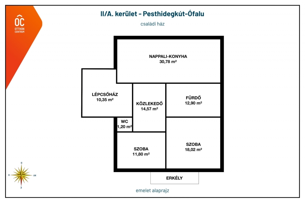 2. lakószint: nappali-étkező, 2 szoba, fürdőszoba