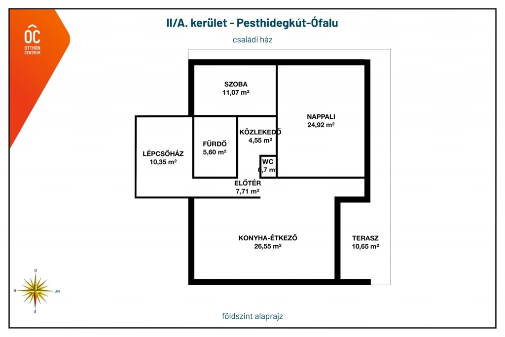 1. lakószint: nappali, konyha-étkező, hálószoba, fürdőszoba