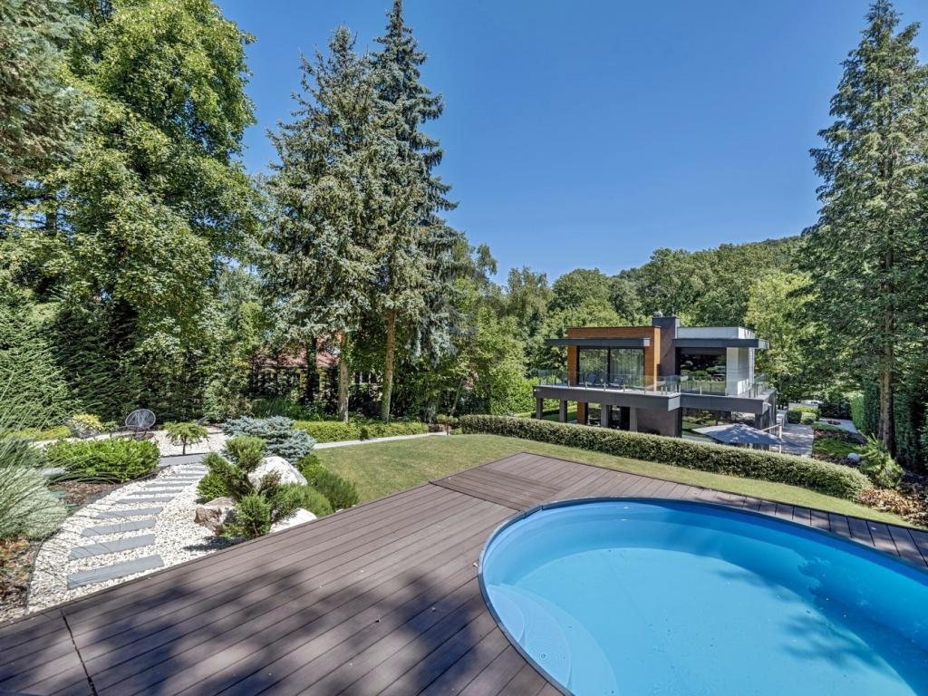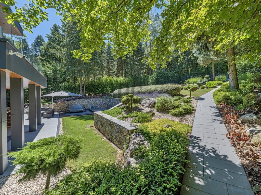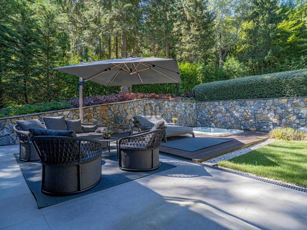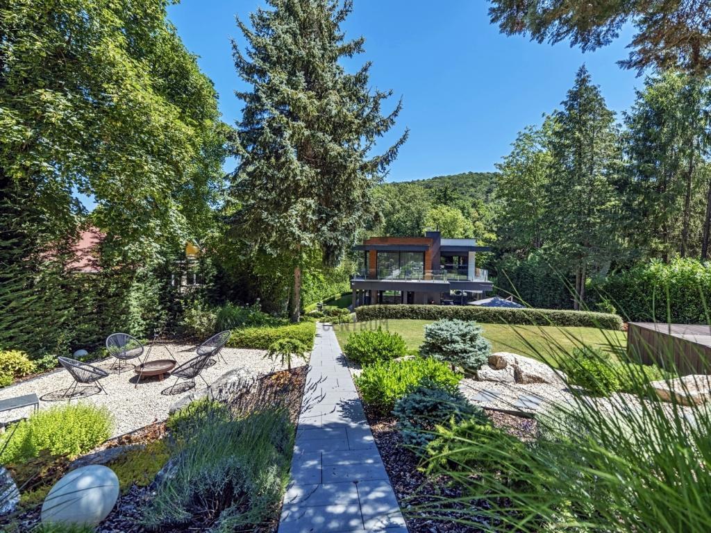 Az ingatlan forgalomtól mentes, csendes utcában található, közvetlenül az erdő közelében, teljesen elszeparált kerttel, amely meghitt és privát hangulatot biztosít. A gondosan karbantartott kertet dús növényzet és virágzó zöldfelületek díszítik, így a természet közelsége itt valóban kézzelfogható élmény.