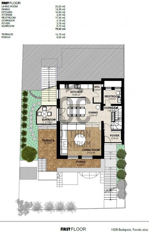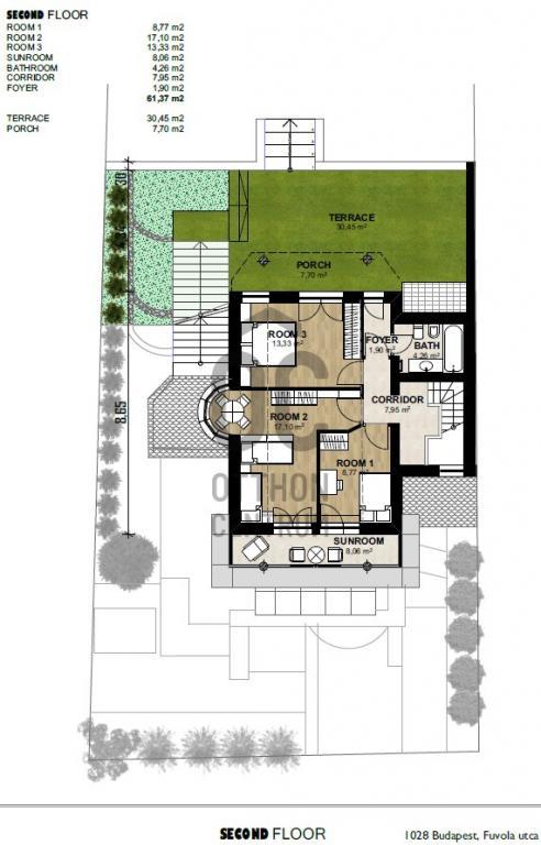 2.emelet: 3 hálószoba, fürdő+WC, közlekedő, teraszkapcsolat