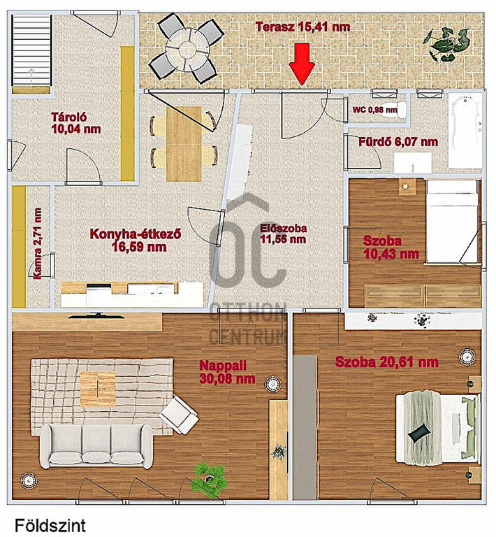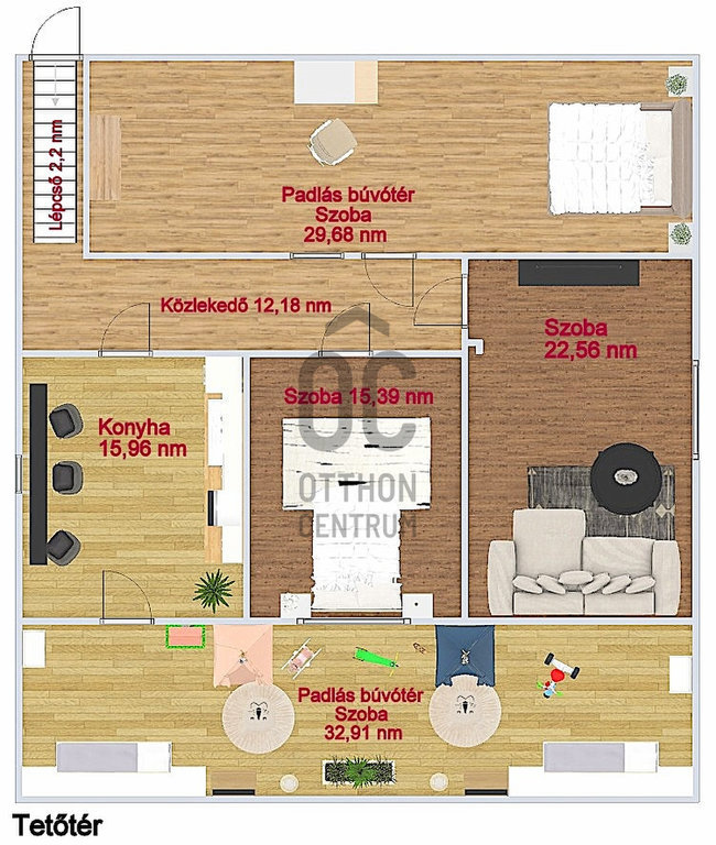 A pince nettó területe 51 nm, a tetőtér pedig 68 nm, amely kellő fantáziával külön lakássá is alakítható.