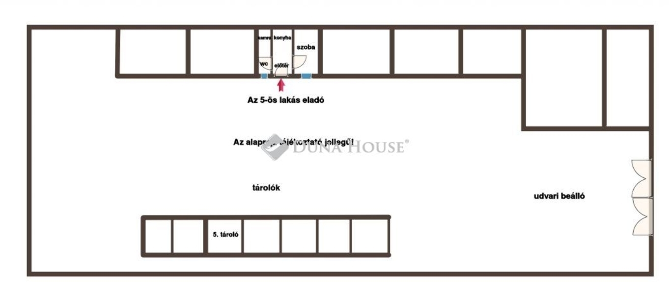 A hétlakásos, rendezett udvarral rendelkező társasház 5-ös számú lakása új tulajdonosát várja. A 32 nm-es, összközműves lakás gázkonvektoros fűtéssel rendelkezik, és három jól elkülönített helyiségből áll: konyhaelőszoba, WCkamra és szoba. Fürdőhelyiség nincs, csak WC.