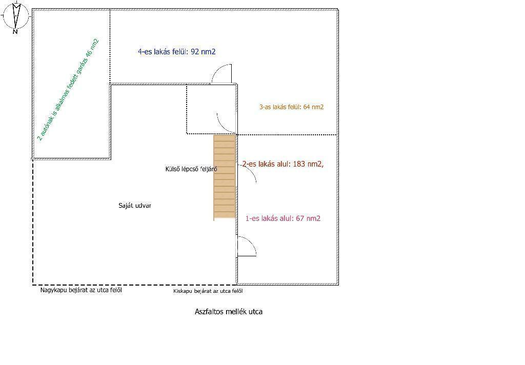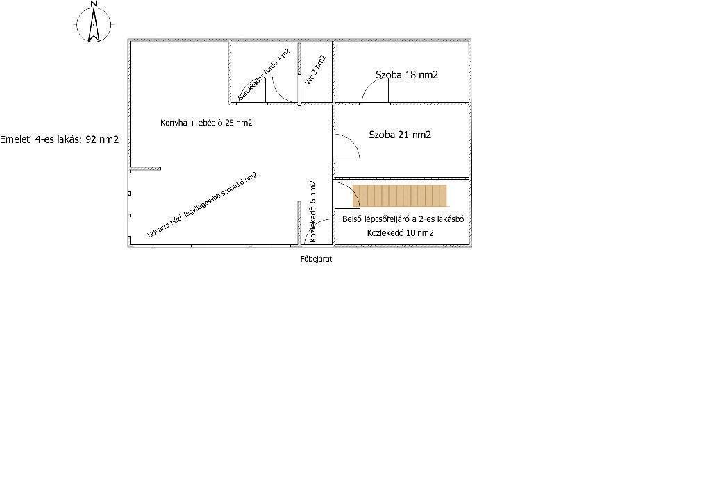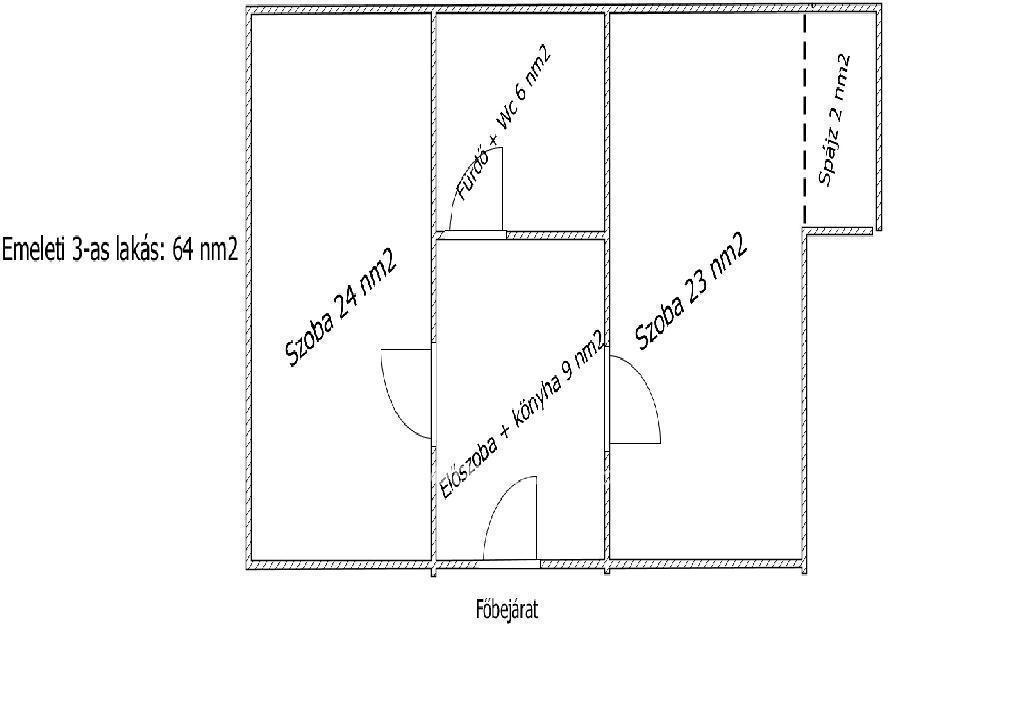 - Emeleti lakások: 64 nm-es két szoba + konyha, fürdőszoba,