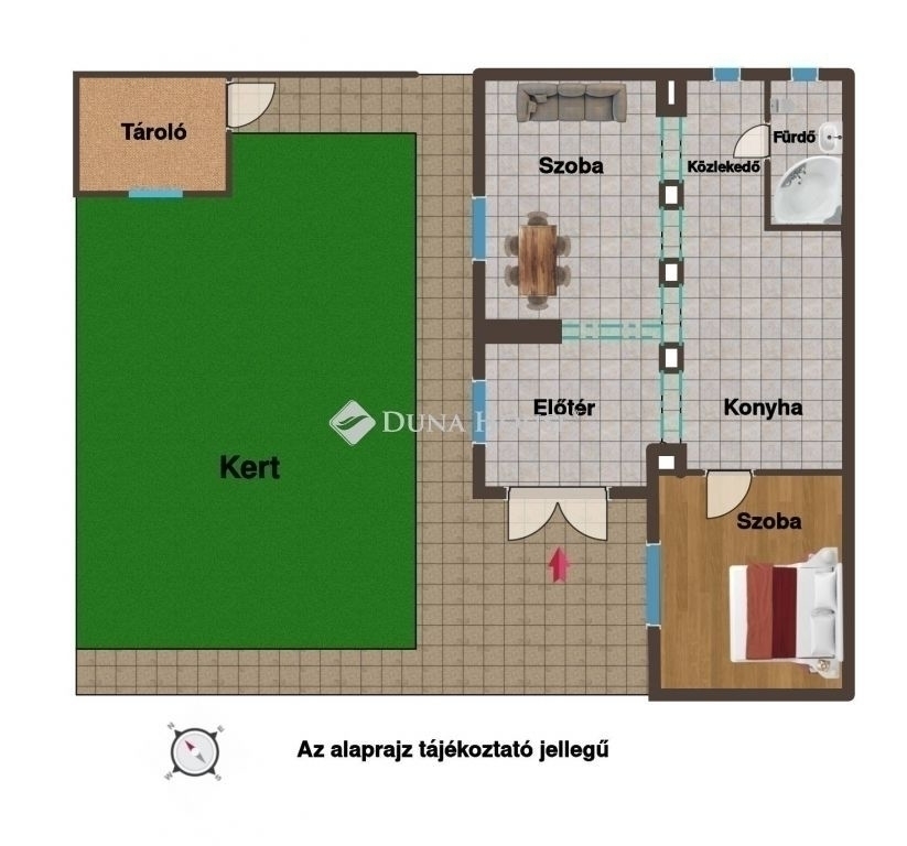 Eladó házrész Pesterzsébeten Erzsébetfalva városrészben - saját kertrésszel, melléképülettelBudapest XX. kerületében, Pesterzsébet kedvelt részén, Erzsébetfalván eladó egy 48 m²-es, kétszobás, kertkapcsolatos házrész.Az ingatlan rendezett jogi háttérrel rendelkezik, ügyvédi megosztással.A telken összesen két lakás található, amelyek egy közös fallal kapcsolódnak egymáshoz. Mindkét házrészhez külön, kerítéssel leválasztott kert tartozik, valamint önálló használatú tároló is rendelkezésre áll.A meghirdetett házrész önállóan megközelíthető, az utca felől egy külön bejáratú, szolgalmi úton keresztül.Ez a kialakítás biztosítja a jól elkülönülő használatot és a nyugodt lakókörnyezetet.Az ingatlan folyamatosan karbantartott, átlagos műszaki állapotú, igény szerint korszerűsíthető.Az alacsony fenntartási költségek: közös költség nincs, minden lakás önálló mérőórákkal rendelkezik.Alaprajzi kialakítás:A lakás belső elrendezése átgondolt, jól használhatóElőtér: 7,0 m²Nappali: 12 m²Konyha: 10,5 m²Hálószoba: 12 m²Fürdőszoba + WC: 3,2 m²Közlekedő: 3,2 m²Belmagasság: 2,75 m.A belső tereket dekoratív, boltíves nyílások tagolják, a padlóburkolat minden helyiségben világos színű kerámialap, a hálórészben laminált padló.Műszaki jellemzők:vastag téglafalakfa szerkezetű tetőfa nyílászárók duplaszárnyú, hőszigetelő üvegezésselkívül kőburkolattal díszített ablakkeretekfűtés és melegvíz: Saunier Duval kombi kazánbeépített konyhabútorAz ingatlan 120 m²-es telekrésszel rendelkezik, továbbá egy 5 m²-es, saját használatú melléképület/tároló is tartozik hozzá.Ez a házrész ideális választás lehet azok számára, akik kertkapcsolatos, alacsony rezsijű, jogilag rendezett otthont keresnek, jó elosztással, nyugodt környezetben.Családoknak, pároknak, idősebb korosztálynak vagy akár befektetési célra is jó alternatíva.