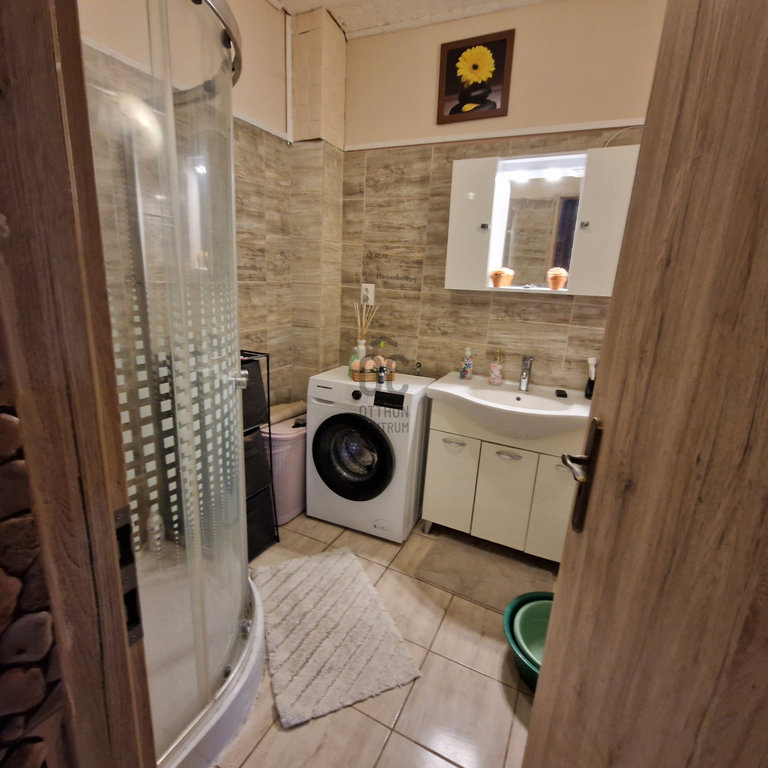 Az emeleten fürdőszoba és WC található, míg a földszinten a fürdő és a WC külön helyiségben kapott helyet.