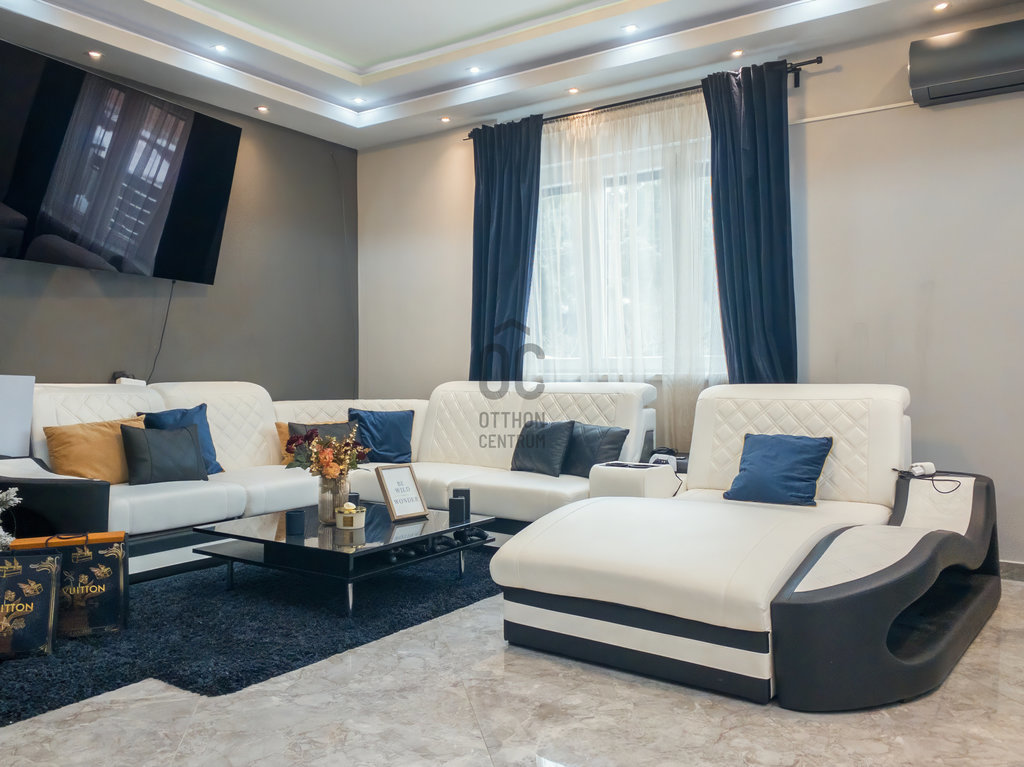 A házban 6 szoba található, mindegyik világos és tágas, így ideális teret biztosítanak a családi élethez és a vendégek fogadásához. Két fürdőszoba áll rendelkezésre, így a reggeli rohanás során sem kell kompromisszumot kötnie a kényelem terén. Az ingatlan kiváló állapotban van, gáz (cirko) fűtés és a klímaberendezés biztosítja a kellemes hőmérsékletet bármely évszakban.
