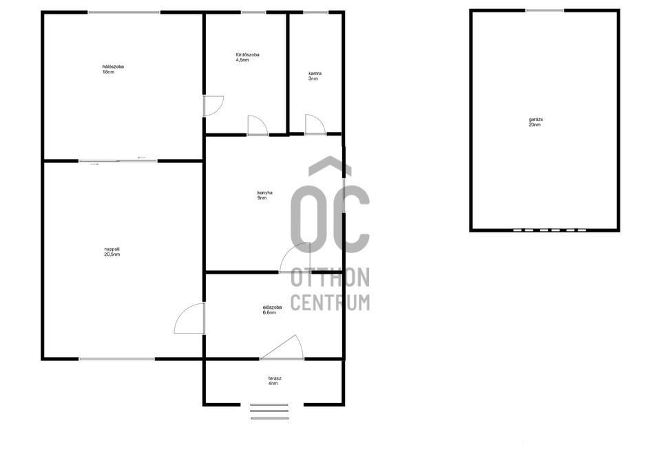 - Különálló 15 m²-es garázs, előtte fedett autóbeállási lehetőség