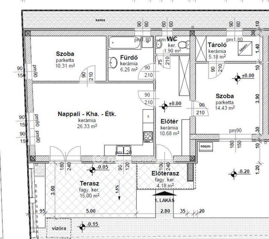 Az ingatlan praktikus, jól átgondolt elrendezéssel készül. A tágas előszobából érkezünk a világos, amerikai konyhás nappaliba, amely a családi élet központi tere lehet. Innen közvetlen kapcsolat nyílik a kellemes méretű teraszra, amely ideális helyszíne lehet a reggeli kávéknak vagy a nyári pihenéseknek. A lakásban két kényelmes méretű hálószoba kap helyet, emellett külön fürdőszoba, különálló mellékhelyiség és egy praktikus tárolóhelyiség, gardrób is kialakításra kerül. Az otthonhoz két terasz tartozik, melyek tovább növelik a lakótér kényelmét és használhatóságát.