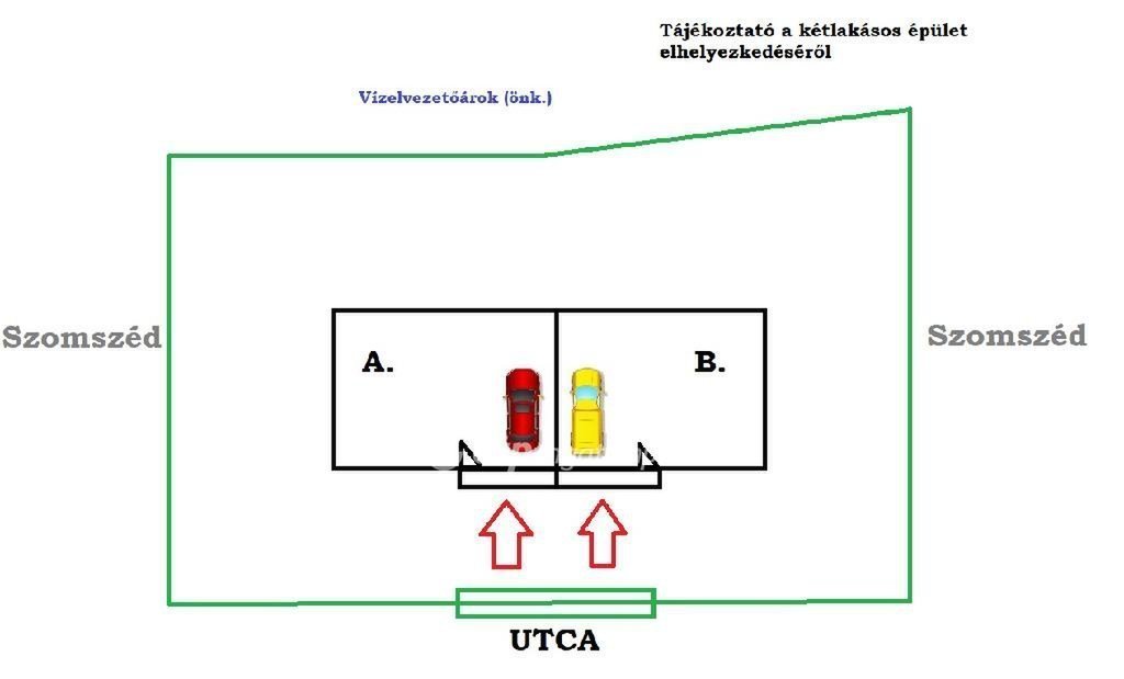 A telek remek adottságainak köszönhetően széles az utcafront, így a telket pont el lehetett felezni az A. és B. épületekhez. Mindkét lakrészhez saját garázs és kert, valamint önálló fogyasztásmérők lesznek.
