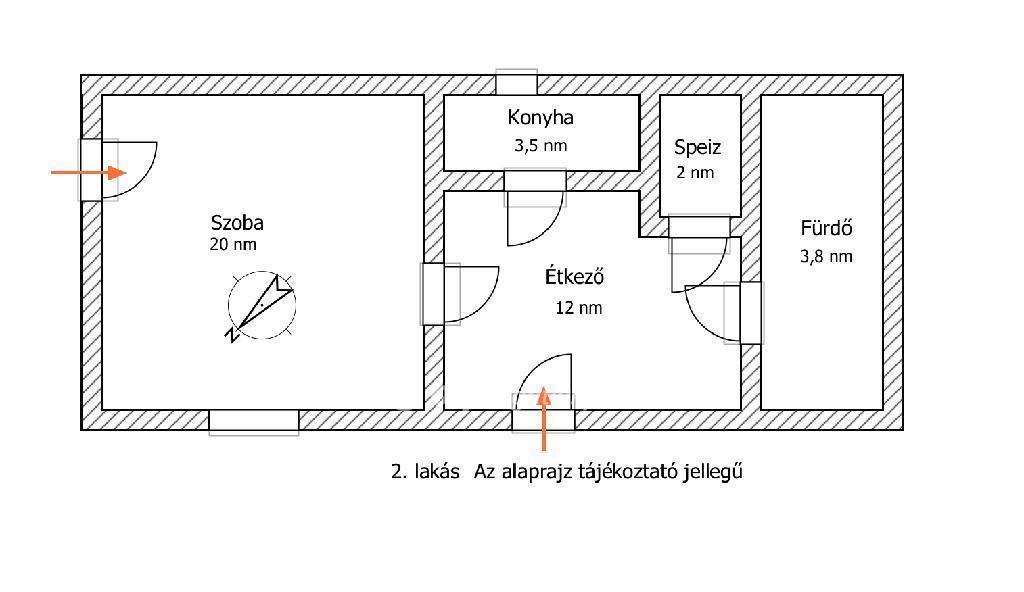 A főépület 77 nm, 3 szobával, konyhával és fürdővel, gázkazános fűtéssel. Ehhez kapcsolódik egy 41,5 nm-es, külön is használható lakrész, valamint egy 25,5 nm-es, önálló bejáratú garzonlakás, amely eredetileg üzlethelyiségként épült, így akár vállalkozásra, akár kiadásra is kiválóan alkalmas.