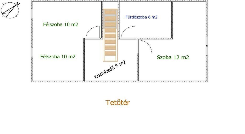 ** Tetőtér: 2 félszoba, 1 szoba, fürdőszoba és közlekedő, ideális a gyerekek vagy vendégek elhelyezésére.