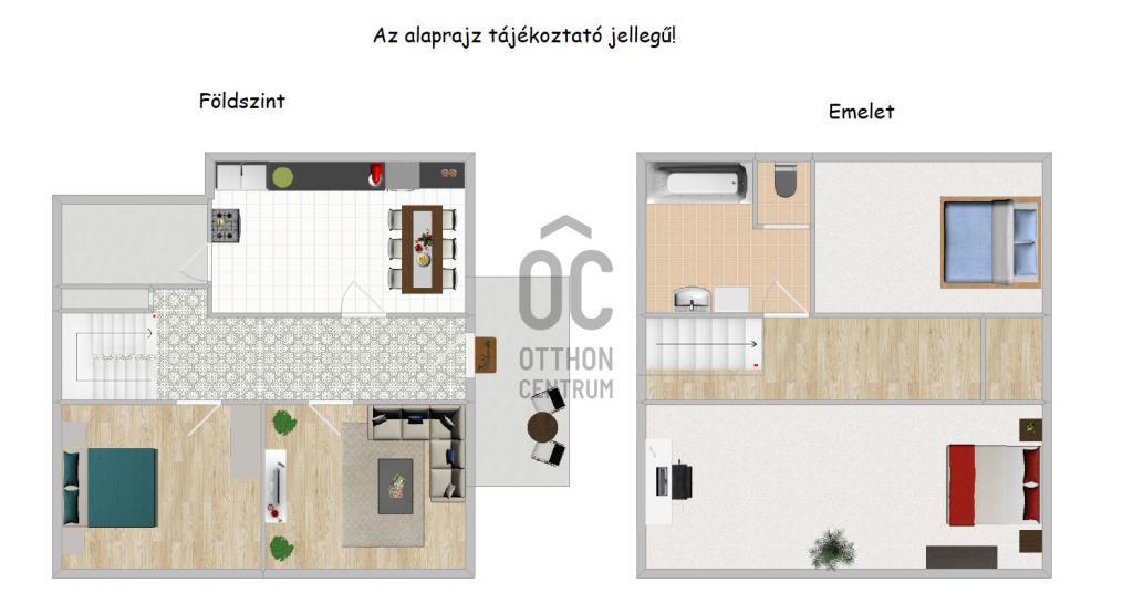 (A nagyobb emeleti szoba akár további helyiségekre is osztható, igény szerint.)