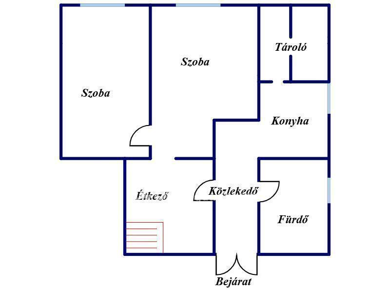 A fenti részen, ami tetőtéri, egy félszoba, és egy 12,8nm-es szoba található.