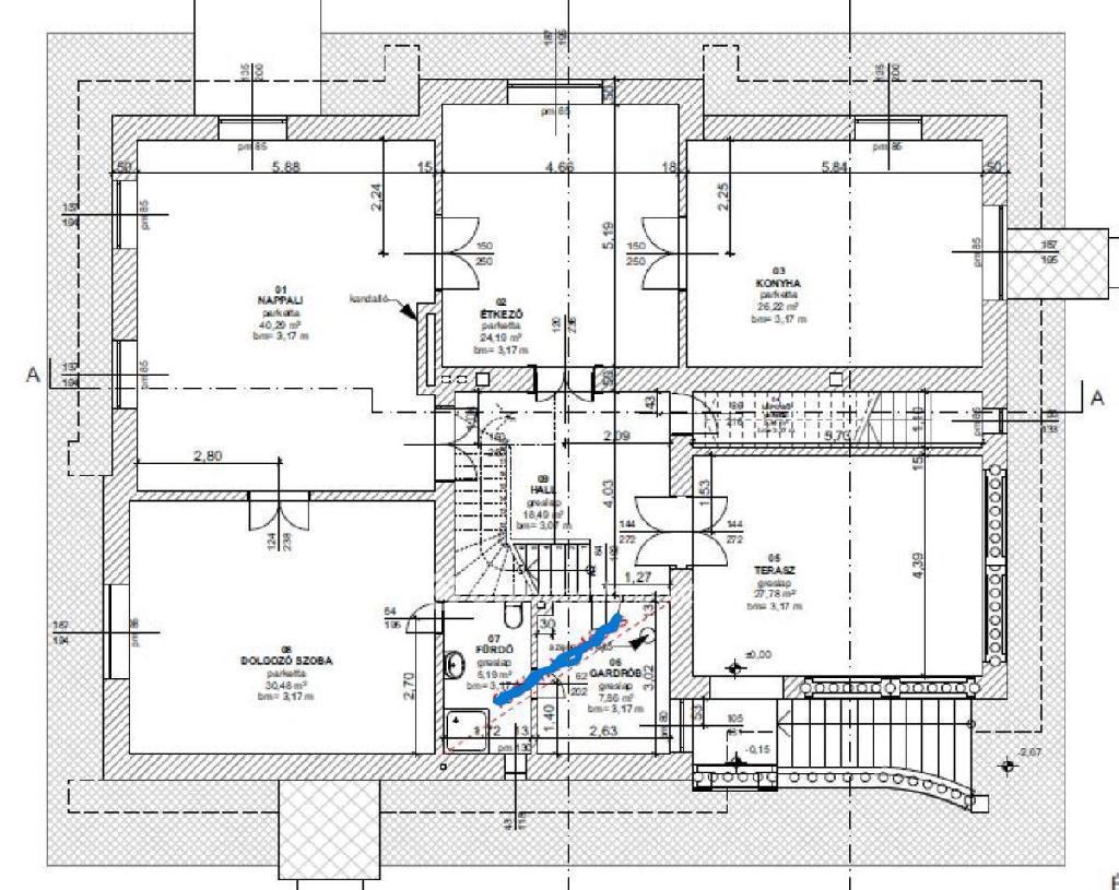 Az alagsori szinten garázs, szauna, mosókonyha, gépészeti helyiség és egy garzon lakás került kialakításra. Egy kocsi számára nyitott felszíni beálló is található. A ház felújítandó.