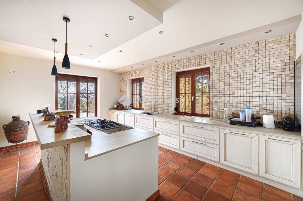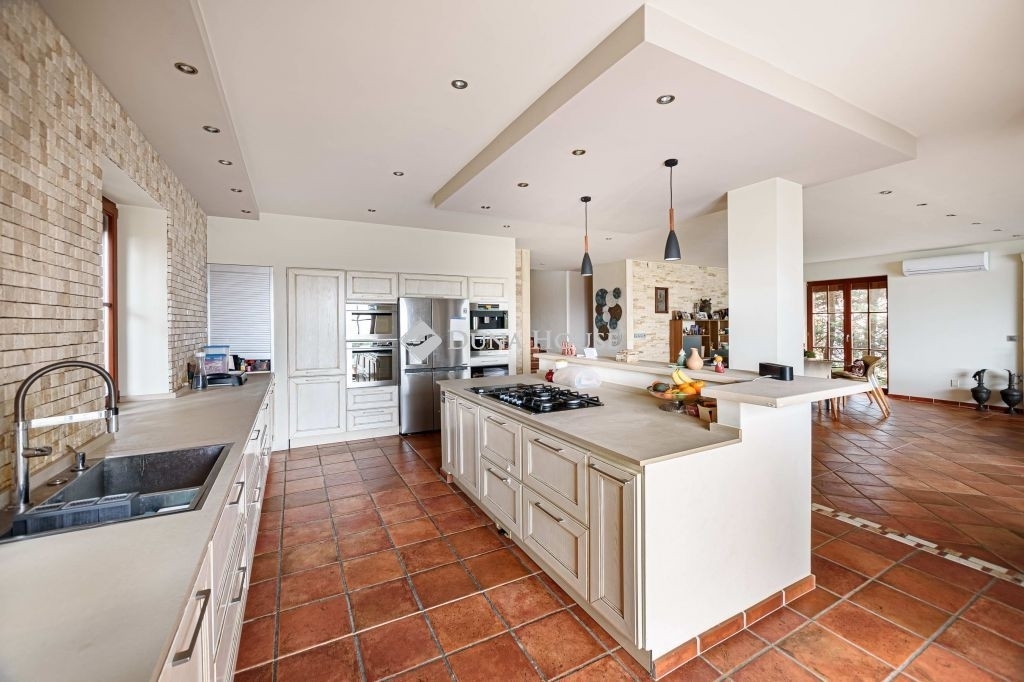 ****TÁBORHEGYEN MEDITERRÁN LUXUSOTTHON KÜLTÉRI MEDENCÉVEL WELLNESSZEL****III. kerület egyik legkedveltebb részén, a Toronya utcában kínálom megvételre ezt a lenyűgöző, 450 m²-es, háromszintes, mediterrán stílusú luxusingatlant, amely minden részletében a kényelmet és az exkluzivitást szolgálja.Az épület külső és belső tereiben egyaránt megjelenő kőburkolatok különleges, időtálló atmoszférát teremtenek.Alsó szint 80 m²-es wellness oázisA ház egyik legkiemelkedőbb része az impozáns wellnessrészleg, amely 6 fős finn szaunával, prémium jakuzzival, edzőteremmel és fürdőszobával rendelkezik.A wellnessből közvetlen kijárat nyílik a fűthető kültéri medencéhez, amely a kerttel együtt valódi privát rekreációs teret biztosít.Földszint tágas, reprezentatív élettérA szinteltolásos nappali természetes fényben fürdik, amelyhez modern konyha és étkező kapcsolódik.Ezen a szinten található még egy hangulatos télikert, vendégszoba és egy elegáns fürdőszoba.A konyhából egy 25 m²-es, panorámás teraszra léphetünk ki, amely tökéletes helyszín a családi étkezésekhez vagy esti borozásokhoz.Emelet privát, nyugodt zónaA felső szinten négy hálószoba, három fürdőszoba és egy külön gardróbszoba kapott helyet, így a család minden tagja számára biztosított a saját, kényelmes tér.Felszereltség és extrákmodern hőszivattyús fűtés padlófűtésselriasztó- és kamerarendszerelektromos redőnyökszúnyoghálós nyílászárókkétállásos garázs elektromos kapuvalparkosított kert, automata öntözőrendszerrelfűthető kültéri medenceEz az ingatlan különleges lehetőség mindazok számára, akik a III. kerület csendes, mégis kiváló infrastruktúrával rendelkező részén keresnek prémium otthont, kompromisszumok nélkül.Irányár: 697 500 000 Ft Hibás hirdetés bejelentése