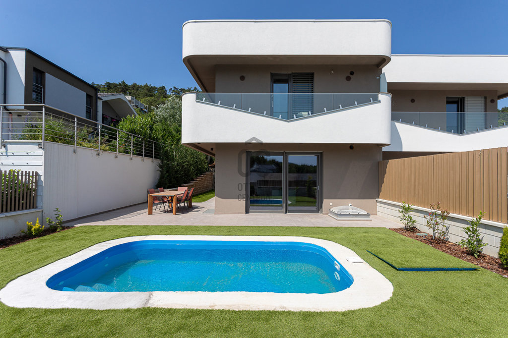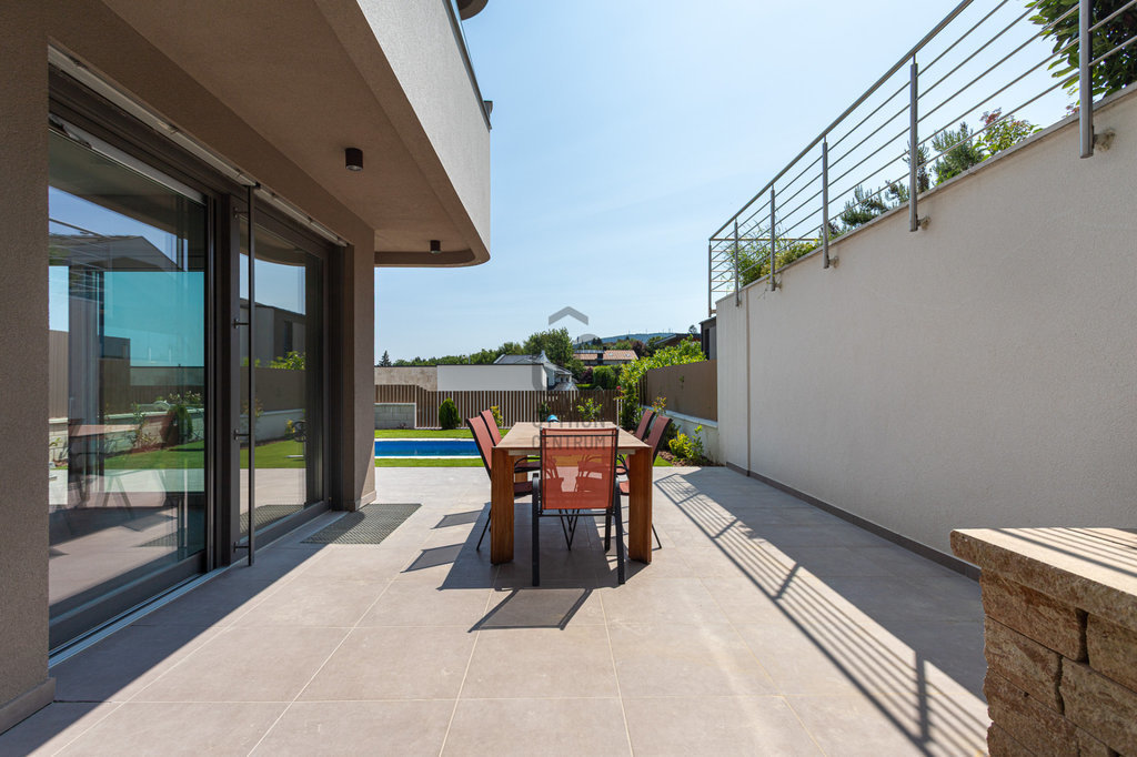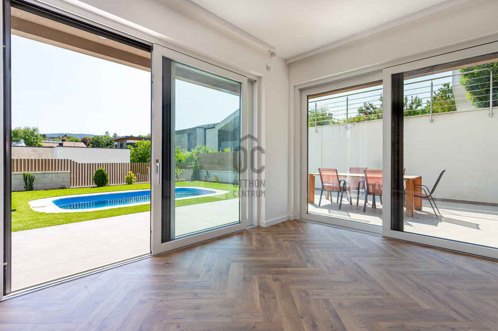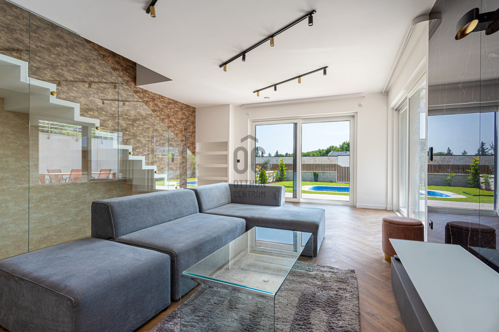 Eladásra kínálok Budapest III. kerület – Aranyhegyen 225 m²es panorámás ikerházfelet 400 m² telken medencével 5 szobás 4 fürdőszobás 2 állásos garázzsal