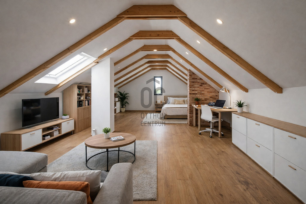 A padlástér beépíthető, így akár további lakóterület is kialakítható benne – a belmagasság lehetővé teszi egy különálló lakórész kialakítását is.