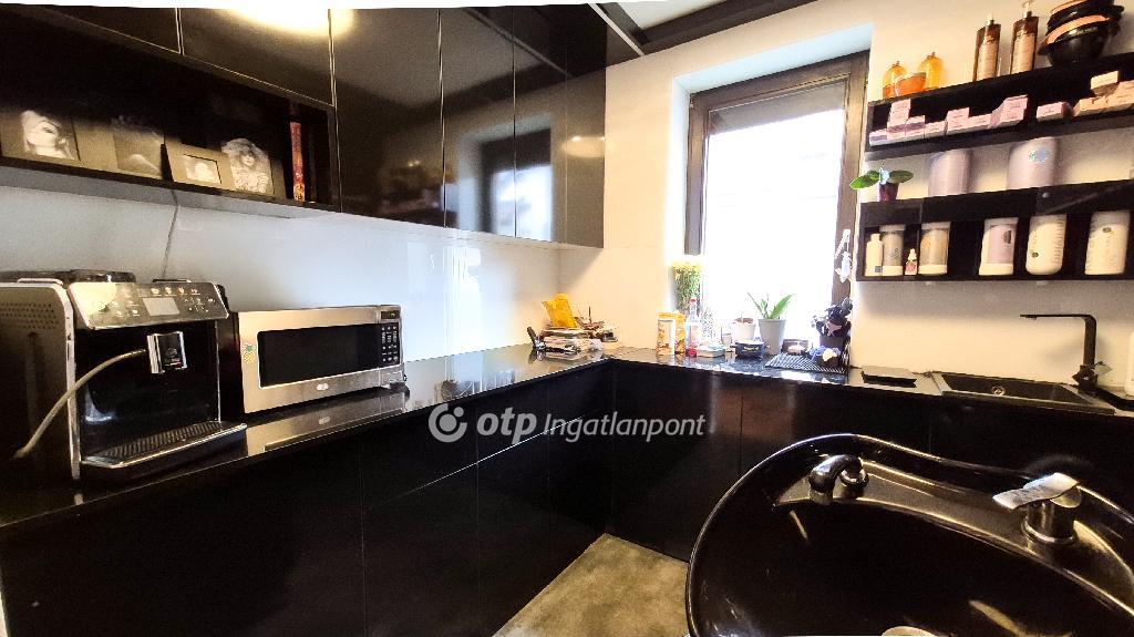 Mivel a földszinten jelenleg fodrászszalon üzemel, az emeleten a korábbi három hálószobából kettőt összenyitva amerikai konyhás nappalit, közösségi teret hoztak létre.