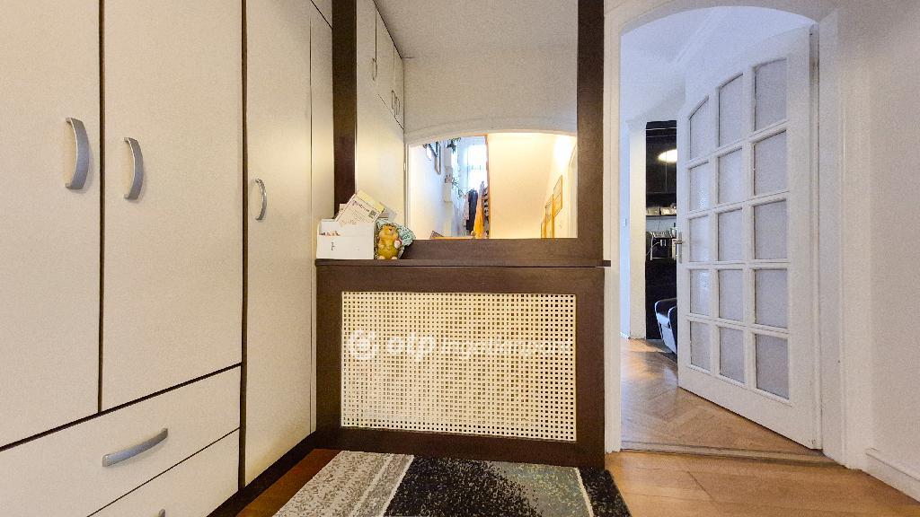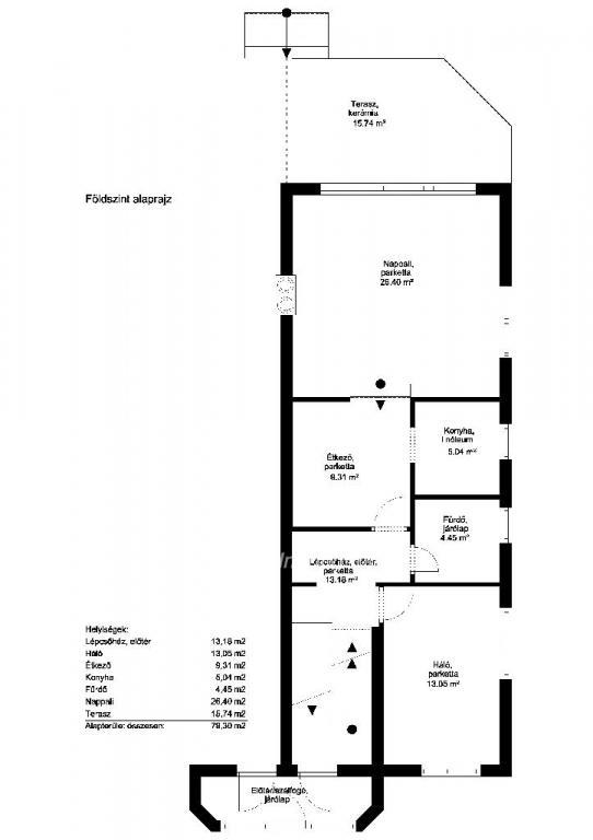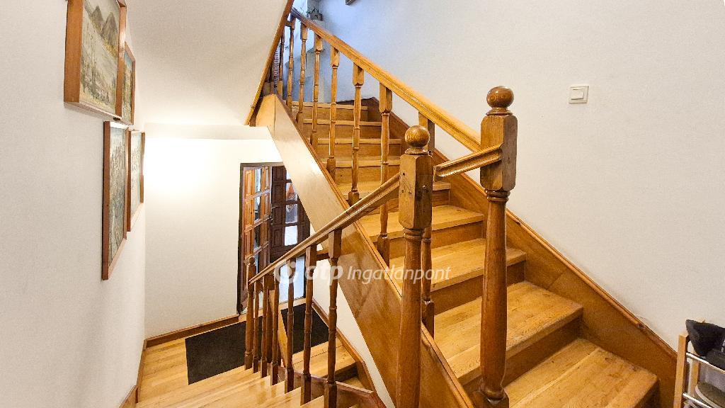 A bejárat egy közös szélfogóból nyílik, a szinteket tömör tölgyfa belső lépcső köti össze egymással.