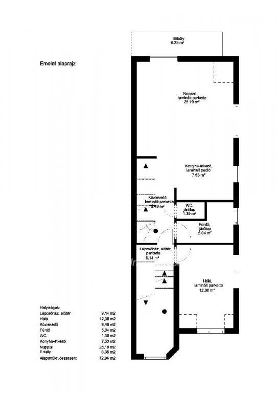 Így az első emeleten jelenleg egy hálószoba, zuhanyozós fürdő, WC, tágas előtér és amerikai konyhás nappali található.