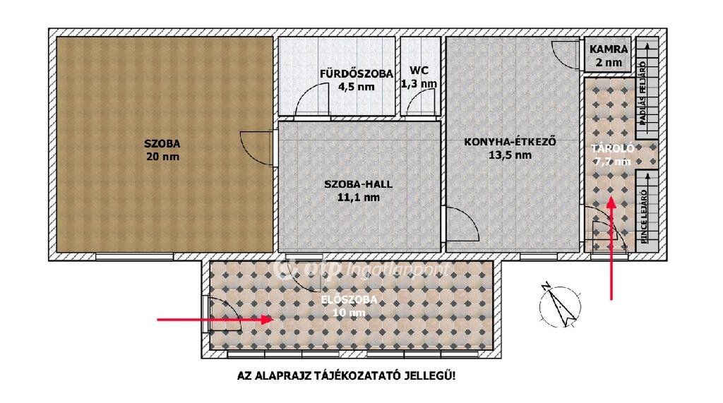 - vegyes burkolatok: parketta és mettlachi padló, csempézett helyiségek