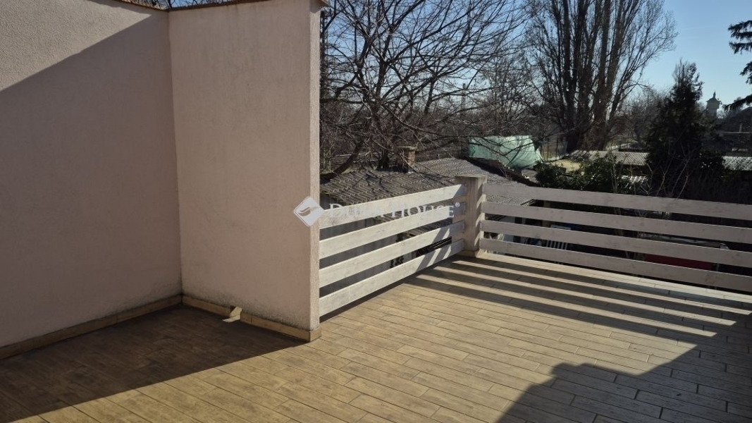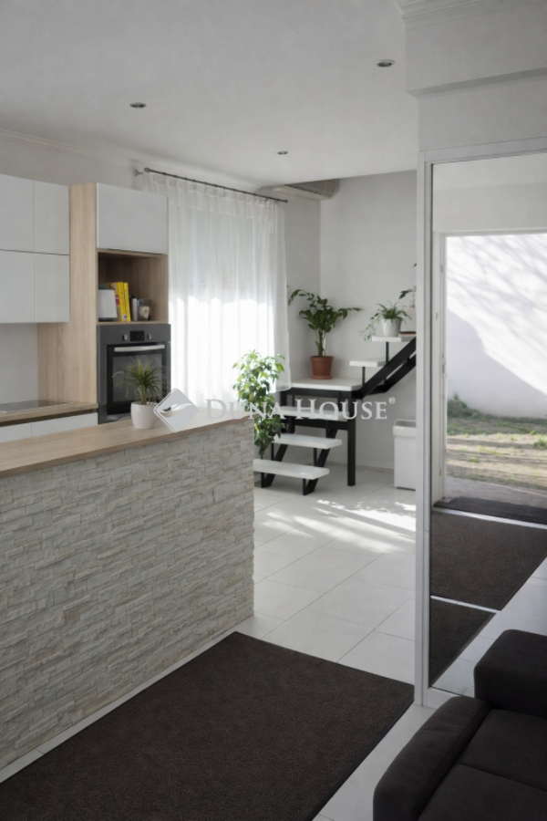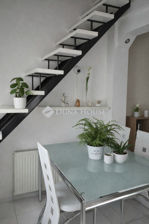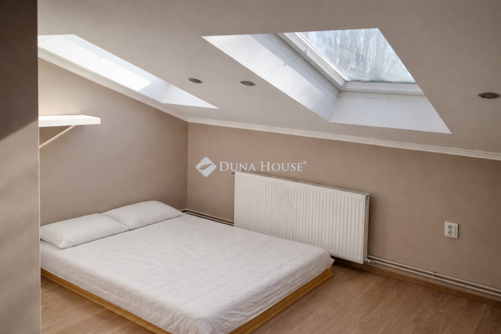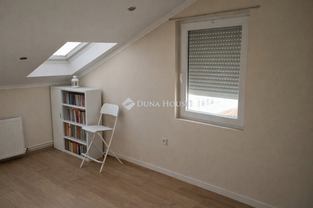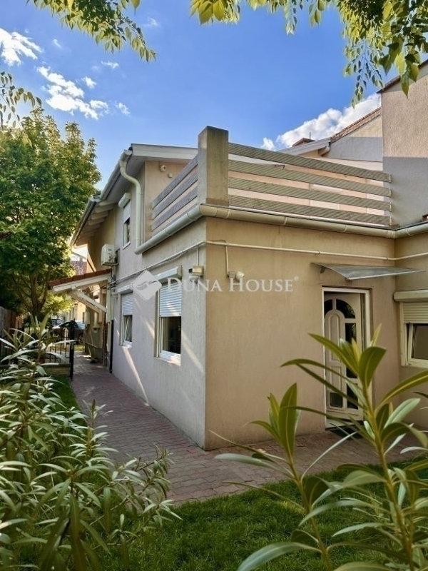 Eladó Újpest Kertvárosában, egy 420nm telken elhelyezkedő, 204nm-es, 5 szobás, tetőtér beépítéses, két generációs családi ház, önálló garázzsal, tárolóval.Az ikerház első fele belépve az ajtón egy kényelmes előszobát, balra egy konyharészt, konyhaszigetet, majd egy igazán tágas, fényekben úszó, kikapcsolódást biztosító nappalit rejt.Az ablakkal ellátott fürdő szoba wc-vel szintén egy kellemes hangulatot biztosít.Az előszobából lépcső vezet fel a két tetőtéri szobába, ahol a kisebbik szoba gardróbbal is ellátott. Természetesen itt is fürdő-wc kiépítésre került.A másik házrészben egy kimondottan tágas étkezős-konyhát, nappalit, modern fürdő-wc-t és egy tárolót alakítottak ki. A lépcső egy szintén nagy méretű szobába vezet fel, ahonnan a 27nm-es teraszra léphetünk ki.Az ingatlanhoz tartozik egy 42nm-es két beállós, aknás, ablakos garázs.Ez a ház alkalmas hogy, egy nagy család vagy két már külön életet élő generáció nyugodt, békés környezetben találja meg otthonát!