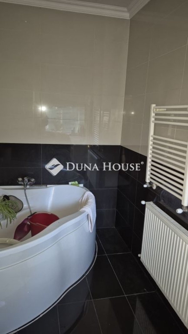 Eladó Újpest Kertvárosában, egy 420nm telken elhelyezkedő, 204nm-es, 5 szobás, tetőtér beépítéses, két generációs családi ház, önálló garázzsal, tárolóval.Az ikerház első fele belépve az ajtón egy kényelmes előszobát, balra egy konyharészt, konyhaszigetet, majd egy igazán tágas, fényekben úszó, kikapcsolódást biztosító nappalit rejt.Az ablakkal ellátott fürdő szoba wc-vel szintén egy kellemes hangulatot biztosít.Az előszobából lépcső vezet fel a két tetőtéri szobába, ahol a kisebbik szoba gardróbbal is ellátott. Természetesen itt is fürdő-wc kiépítésre került.A másik házrészben egy kimondottan tágas étkezős-konyhát, nappalit, modern fürdő-wc-t és egy tárolót alakítottak ki. A lépcső egy szintén nagy méretű szobába vezet fel, ahonnan a 27nm-es teraszra léphetünk ki.Az ingatlanhoz tartozik egy 42nm-es két beállós, aknás, ablakos garázs.Ez a ház alkalmas hogy, egy nagy család vagy két már külön életet élő generáció nyugodt, békés környezetben találja meg otthonát! Hibás hirdetés bejelentése