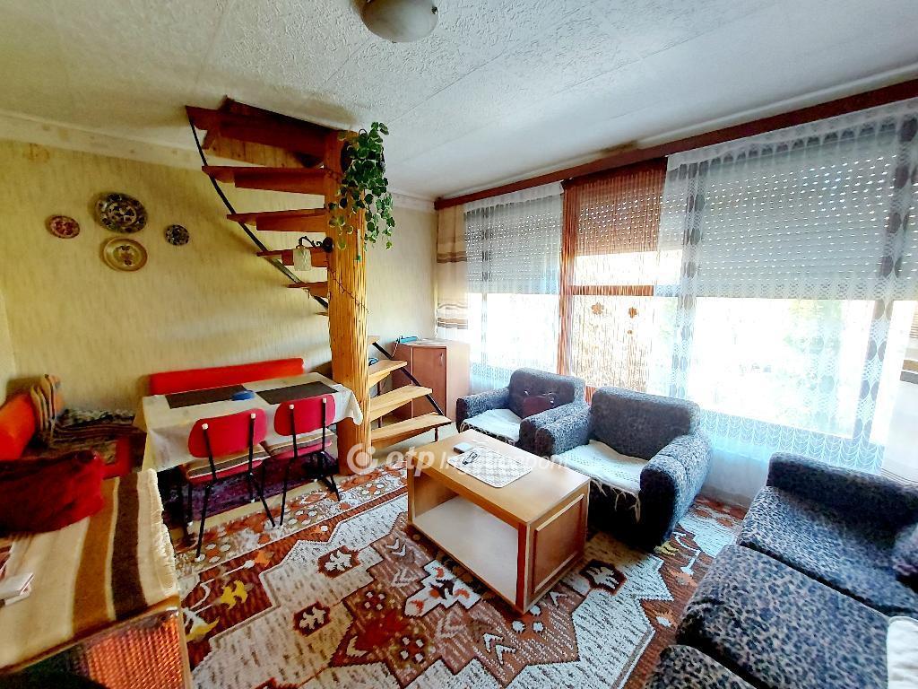 Lakószint (külső lépcsőn közelíthető meg): Konyha, előszoba, napfényes nappali, fürdőszoba WC-vel.