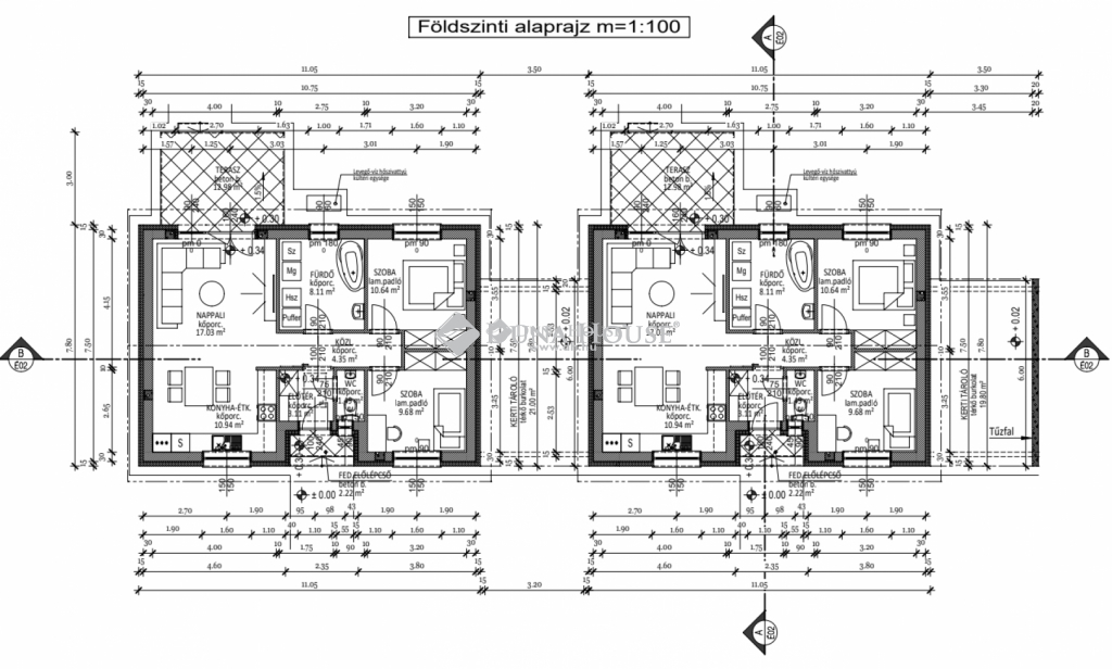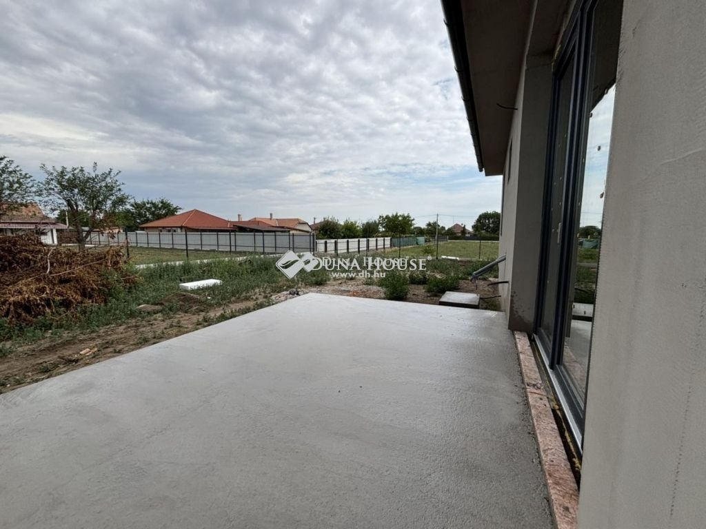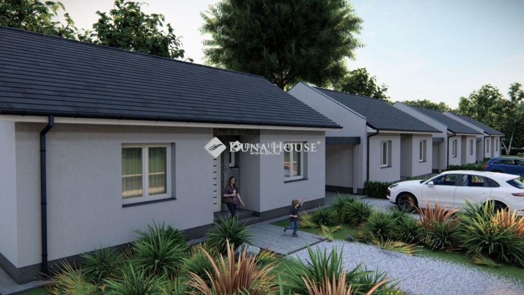 Eladásra kínálunk Cegléd, Nyíl közben egy 65 m²-es, új építésű családi házat, amely hőszivattyúval, fedett gépkocsibeállóval és prémium műszaki tartalommal rendelkezik.A 400 m²-es telek a vételár részét képezi, és az osztatlan közös tulajdonhoz, ügyvédi használati megosztás is tartozik.A teljes, 2940 m²-es területen 4db sorházi jellegű családi ház épül. Minden ingatlanhoz saját telekrész tartozik. (400 m²)Továbbá közös elektromos kapu, fedett beálló, valamint egy parkolóhely is.A kivitelezés már megkezdődött, a várható átadás pedig 2025. november-december.A kivitelező KÖTBÉR-GARANCIÁT IS VÁLLAL!A projekt kivitelezői ELŐFINANSZÍROZÁSSAL is megvásárolható (nem kell előre fizetni), tehát mindig az elkészült, átadott ütem után kell fizetni, illetve a kivitelező szerződésben vállalja, hogy ÁR GARANCIÁT vállal az építményre.A családi ház nettó alapterülete 65 m2, amely tartalmaz:3 szobát (amerikai konyha-nappali-étkező + 2 hálószoba);1 fürdőszobátFedett gépkocsi beállótés egy előszobát.Műszaki tartalom:Teherhordó falazat: Wienerberger Porotherm Profi 30 X-Therm téglaHomlokzati hőszigetelés: 15 cmTetőhéjazat választható: Leier Toscana tetőcserép választható színbenKülső nyílászárók: 3 réteg üvegezésű, kívül antracit, belül fehér prémium Gealan S8000 külső nyílászárók, 36 mm-es üvegezéssel + antracit, alumínium redőnyök + antracit műkő párkányVálaszfal: Wienerberger Porotherm 10 tégla válaszfalBejárati ajtó választható: Colorplast standard betéttelTeraszajtó: Dupla szárnyasBeltéri ajtó: Borovi Szicília (dekorfóliás) választható színbenGépészet: Bosch 3400 levegő-víz hőszivattyú vizes padlófűtésselAz ár kulcsrakész állapotban történő átadással értendő, konyhabútor és lámpatestek nélkül!Közművek:Gáz: nincsVillany: ingatlanbanCsatorna: derítő kerül kiépítésreVíz: ingatlanbanAjánlom mindazoknak, akik Cegléd csendes, új-építésű környezetben szeretnének élni.