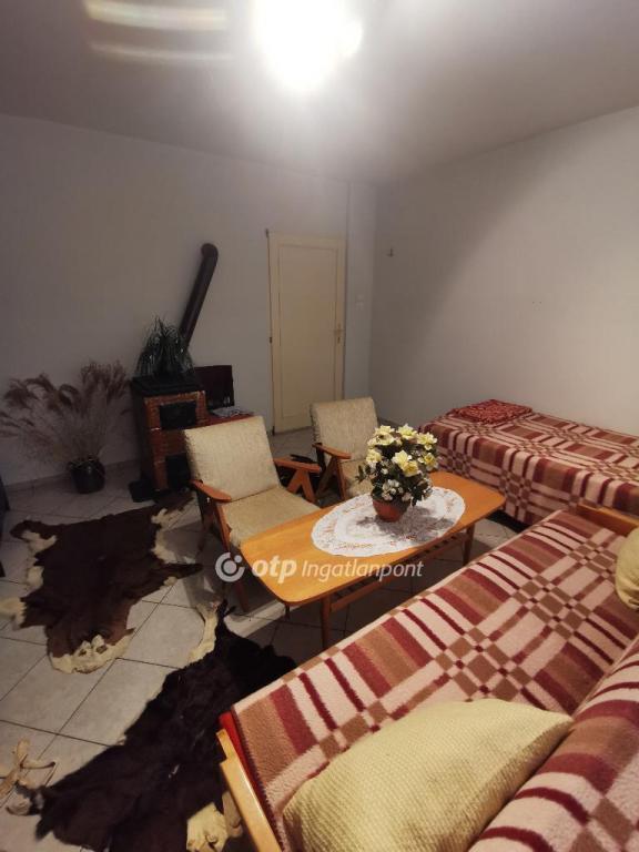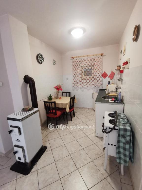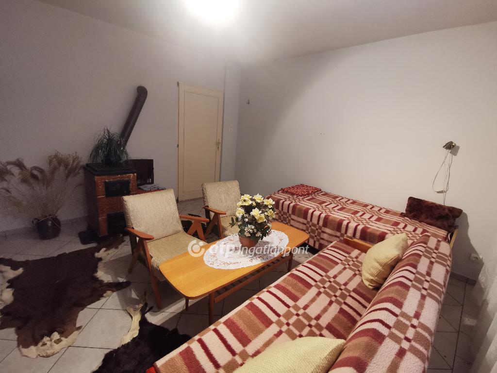 A házban 1 szoba, konyha, étkező, fürdőszoba-WC és háztartási helyiség található, az összes helyiségben mázas kerámia burkolat biztosítja a tiszta és esztétikus megjelenést. A fűtést két fatüzelésű kályha biztosítja, a melegvízről pedig bojler gondoskodik. Az ingatlan villany közművel ellátott, a vízellátás fúrt kútról biztosított, szennyvízelvezetése derítőbe történik.