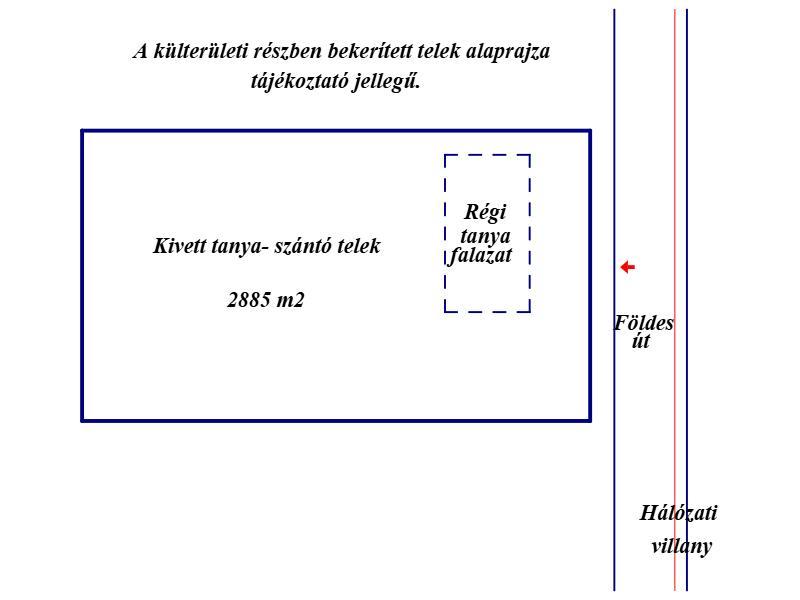 Pest vármegye, Cegléd, Ugyeri részen 2885 m2 nagyságú, kivett tanya (304 m2), szántó (2581 m2) művelési ágú külterületi telek eladó. A terület szabályos téglalap alakú, részben bekerített füves, szántó. Egyik szomszédos oldala erdővel borított, a többi oldalon épületekkel tarkított zöldövezeti zártkertek szomszédságában helyezkedik el. A telek domborzata sík, megközelítése földesútról lehetséges. A közművek közül a villany telken belül megtalálható, ami egy régi, ma már csak részben falazatból álló tanyaépülethez vezetett, jelenleg a hálózatról le van kötve. Az épület igény szerint elbontandó, fejleszthető, melynek kivitelezése az új tulajdonosra vár. A telek a helyi építési szabályzat szerint mezőgazdasági kertes (Mk) övezetben található, ahol a kertgazdálkodáshoz kapcsolódó épületek, építmények helyezhetők el: gazdasági épület, pince, présház, borház, gép, eszköz és terménytároló, üvegház. A beépítési módhoz tartozó építési hely oldalhatáron álló, a beépítési mérték legfeljebb 5%, az épületmagasság felső határa 5 m. Egy telken legfeljebb 2 db épület építhető.
