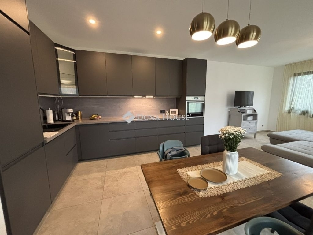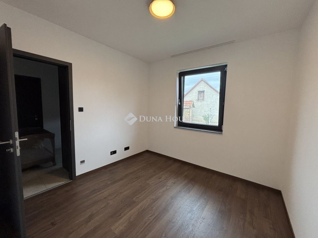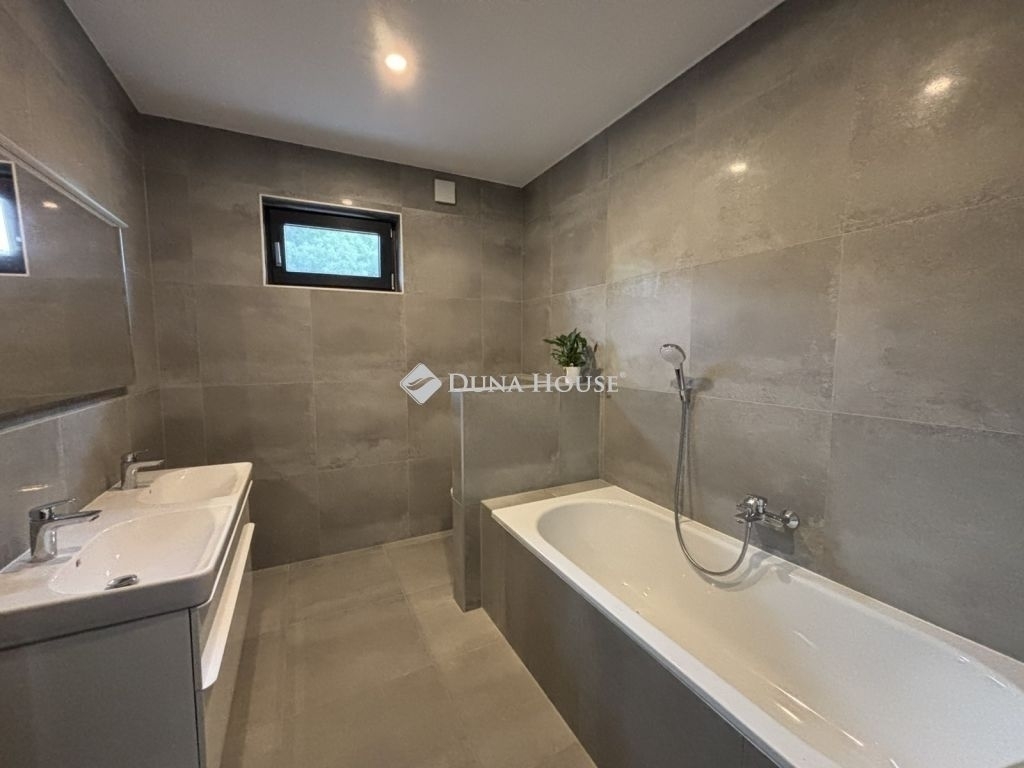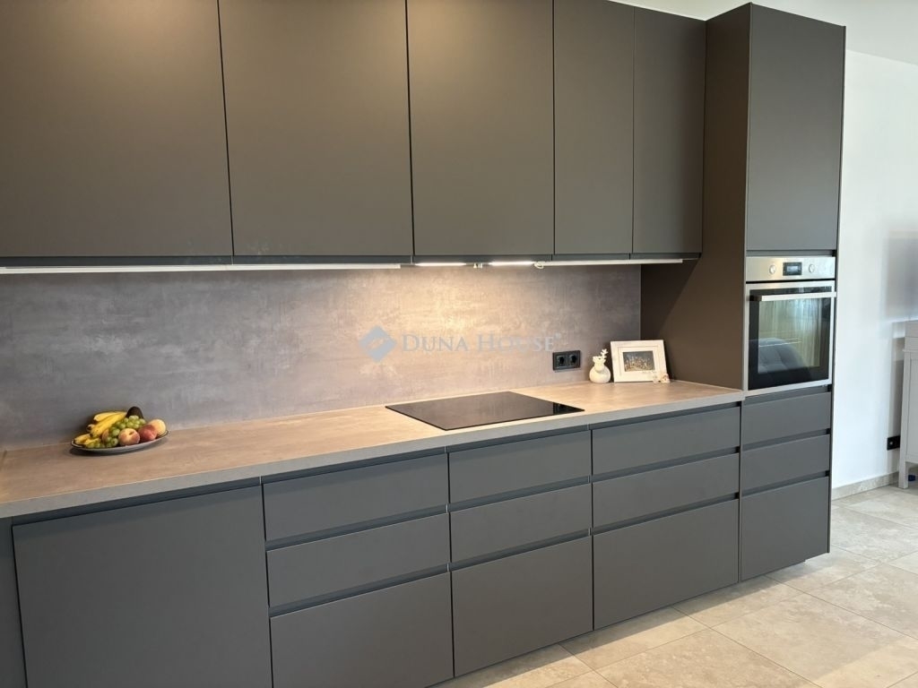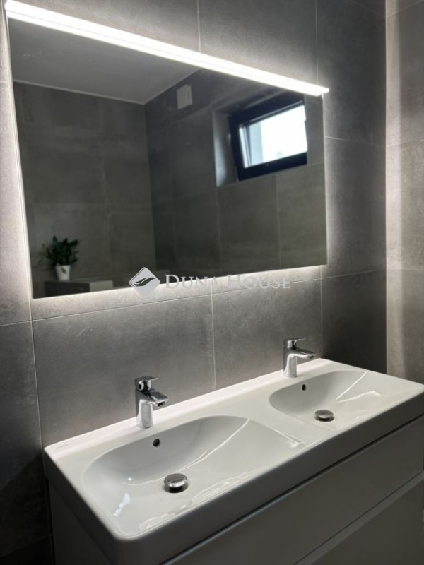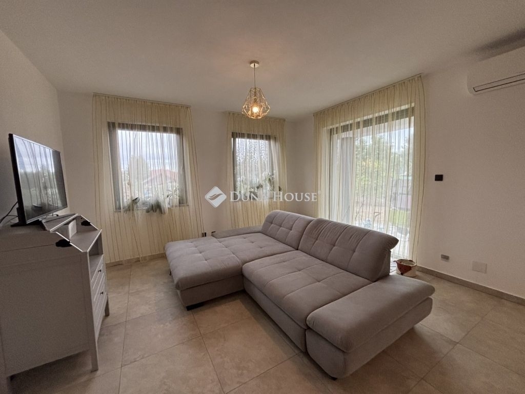 874 m²-es telken, (önálló helyrajzi számon nyilvántartott) 106,86 m² alapterületű, tégla fő- és válaszfalakkal épült, nappali + 3 szobás családi ház várja új tulajdonosát.Modern, okos családi ház eladó csendes környékenFőbb jellemzők:-Teljes körű LOXONE okosotthon rendszer: fűtés, redőnyök és riasztórendszer, amely szabadon bővíthető, és távolról (telefonról) is vezérelhető.-Energiatudatos működés: 3,4 kW napelem rendszer, kondenzációs gázkazán és szobánként külön szabályozható padlófűtés.-Klímakomfort: Daikin Comfora hűtő-fűtő klíma (3,5 kW) + előkészítés további egységhez (hálórész).-Biztonság: kültéri IP kamera (TP-Link, mobilról elérhető) és riasztórendszer.-Prémium nyílászárók: 3 rétegű, GEALAN S9000 ablakok, kívül-belül antracit színben, elektromos alumínium redőnyökkel és szúnyoghálóval.-Időtálló részletek: színezett alumínium ereszcsatorna, kívül-belül műkő párkányok.Belső kialakítás:-Teljesen gépesített IKEA konyha, és PAX gardróbszekrény.-Geberit dupla mosdós fürdőszoba szekrény fűthető Geberit Xeno tükörrel.-Geberit rimless fali WC-k.-Full Doors CPL fóliás ajtók tömör faforgács betéttel.-Bette 180x80 titánacél kád, Hansgrohe csaptelepek.Telek és környezet-Privát, nyeles telek, csendes elhelyezkedéssel, teljes nyugalmat biztosítva.-30 m²-es térkövezett terasz.-Fúrt kút és kerti csap.-6 m²-es kerti tároló pincével.Az udvar végső kialakítása az új tulajdonosra vár.Ez az ingatlan a modern technológiát, az energiatakarékosságot és a kényelmet ötvözi ideális választás, ha biztonságos, jól felszerelt, trendi, okos otthont keresel nyugodt környezetben.