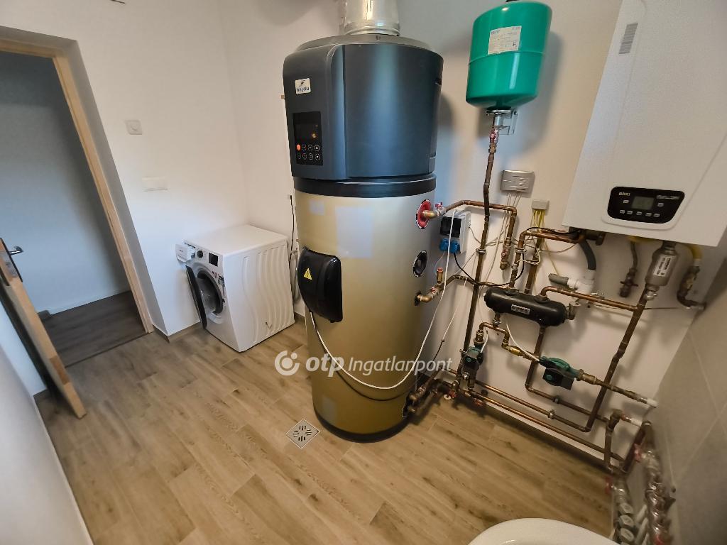 - Fűtés típusa: hőszivattyú, kondenzációs gázkazán (padlófűtéssel, külön vezérelhető emeleti zónával) és egy Romotop kandalló (légtechnikai csövekkel az emeletre)