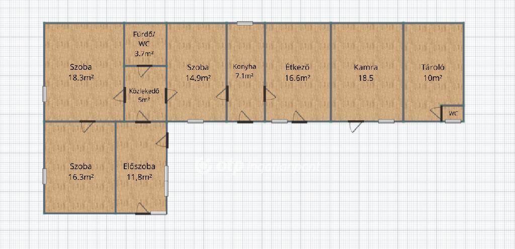 A házhoz több kijárat is tartozik, így akár kétgenerációs otthonnak is ideális lehet. Az L-alak folytatásában egy kamra található, innen nyílik a padlásfeljáró és a pincelejárat is, valamint egy gáztűzhely, így akár nyári konyhának is kialakítható. Mellette pedig egy nyitott tároló és egy kinti WC kapott helyet. A teljes berendezés az ingatlan része, a bútorok mind szép, megkímélt állapotban vannak, és a háztartási gépek , mint a hűtő és a mosógép , szintén benne vannak az árban, így ide valóban csak be kell költözni.