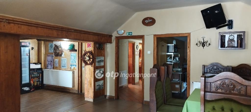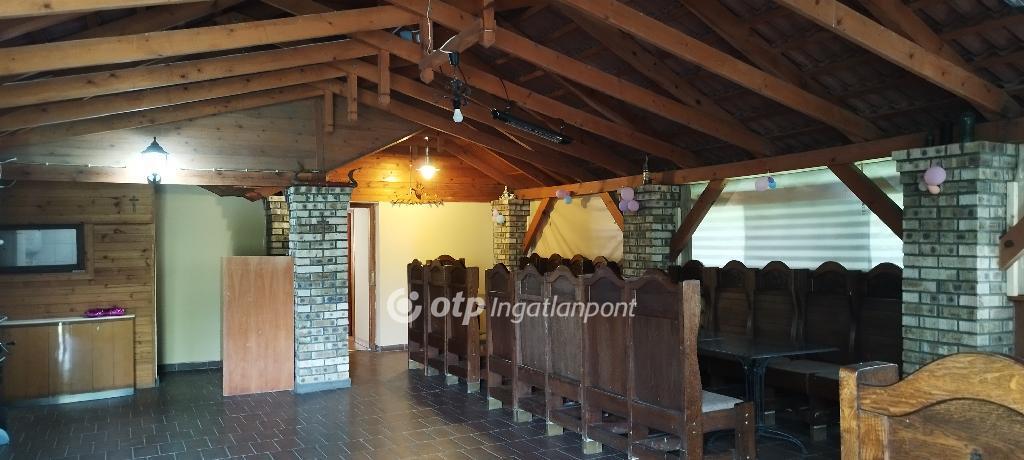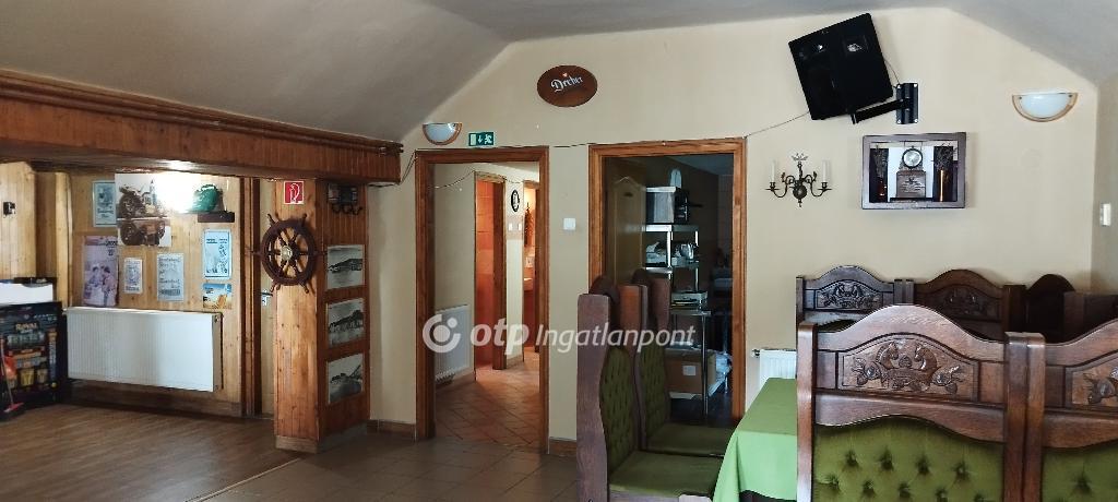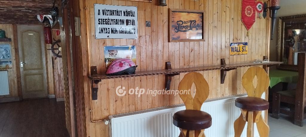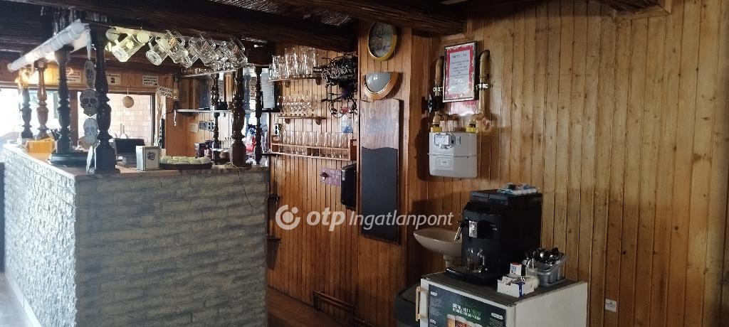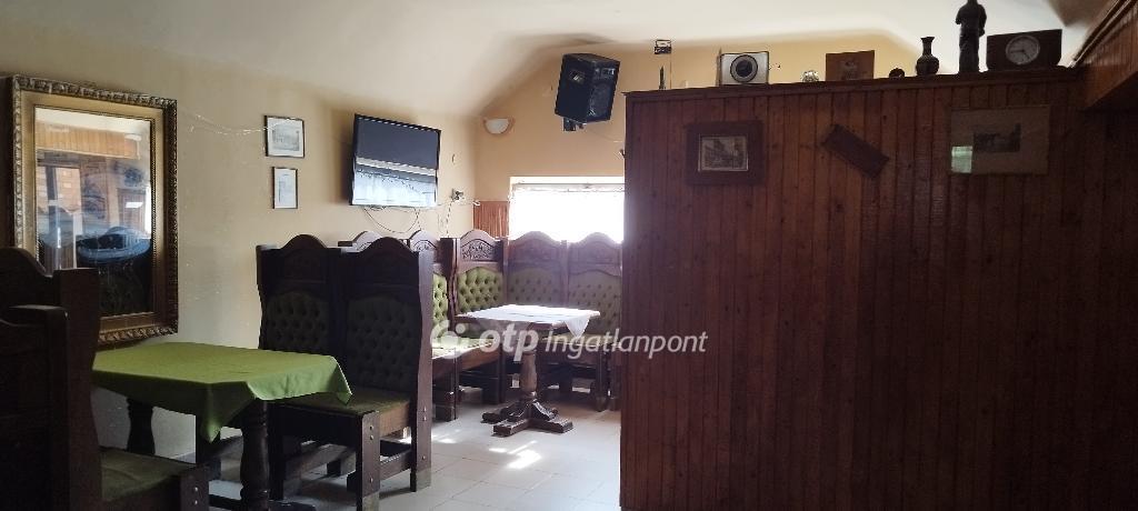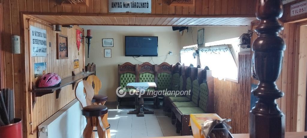 A hozzá tartozó üzlethelyiség korábban vendéglőként és sörözőként működött, és a benne található, kézzel készített, kiváló állapotú bútorok az ingatlan részét képezik ? ezek tökéletesen illeszkednek a hely hangulatához. Elöl egy fedett és egy nyitott terasz is található, ami ideális szabadtéri vendéglátásra. Az épületben elől található egy vendégtér bárpulttal, konyha raktárral, egy személyzeti mosdó, valamint egy külön közlekedőfolyosó, ami összeköti a vendégteret és a rendezvénytermet, és innen érhetők el a női és férfi vendégmosdók. A vendéglő három külön bejárattal is rendelkezik, ami nagyfokú rugalmasságot biztosít az új tulajdonos számára.