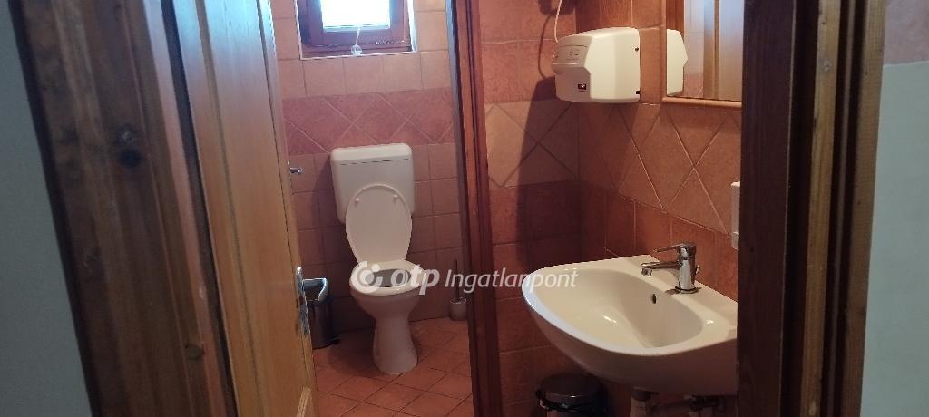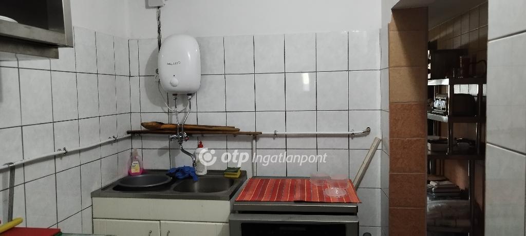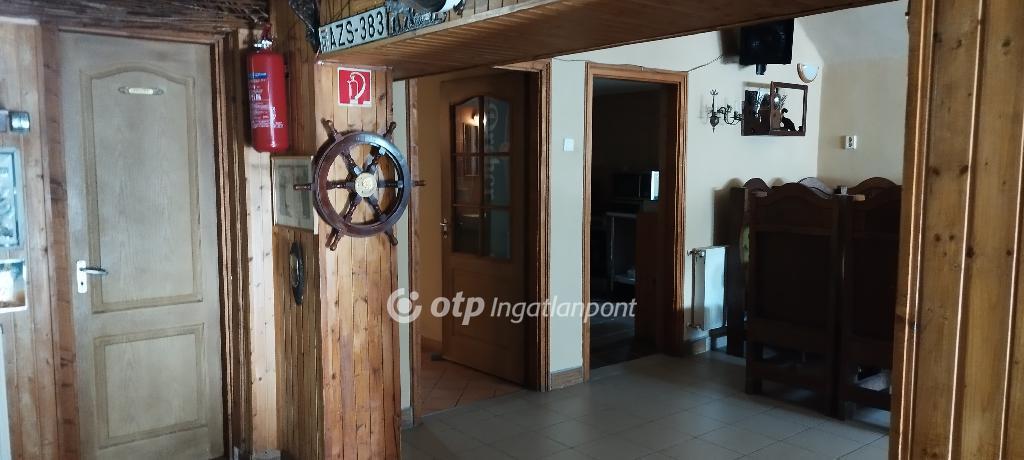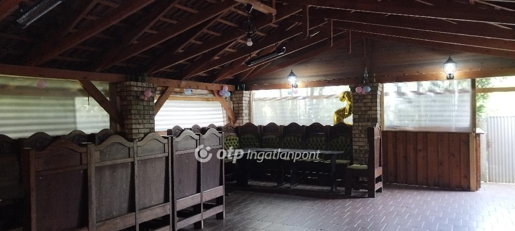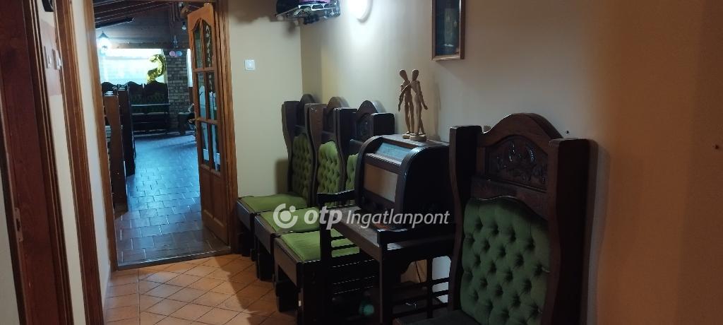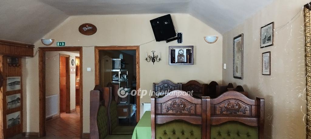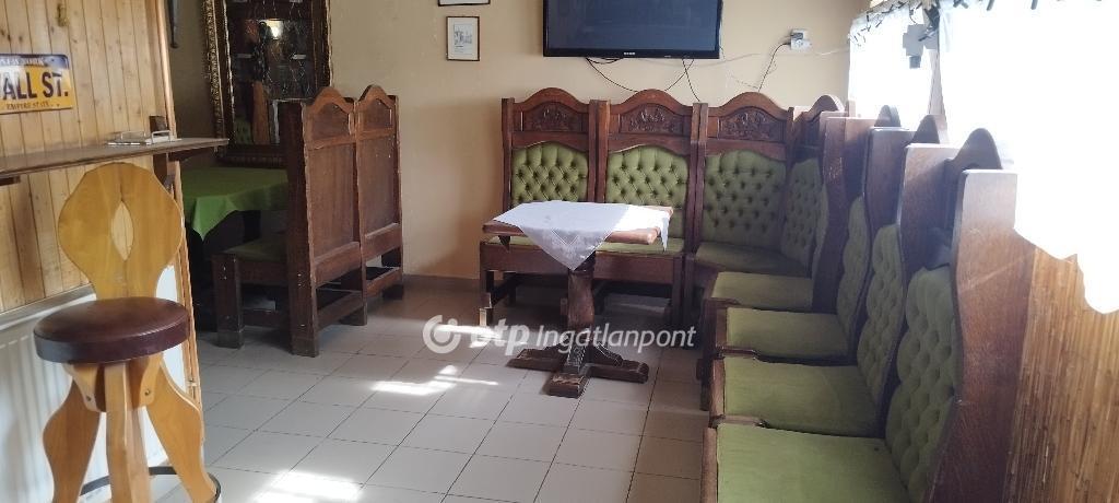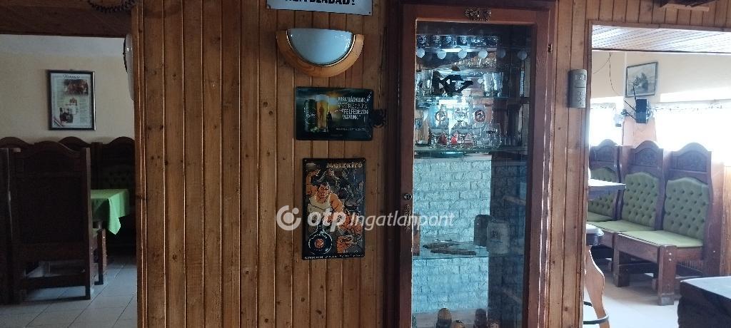 A hozzá tartozó üzlethelyiség korábban vendéglőként és sörözőként működött, és a benne található, kézzel készített, kiváló állapotú bútorok az ingatlan részét képezik ? ezek tökéletesen illeszkednek a hely hangulatához. Elöl egy fedett és egy nyitott terasz is található, ami ideális szabadtéri vendéglátásra. Az épületben elől található egy vendégtér bárpulttal, konyha raktárral, egy személyzeti mosdó, valamint egy külön közlekedőfolyosó, ami összeköti a vendégteret és a rendezvénytermet, és innen érhetők el a női és férfi vendégmosdók. A vendéglő három külön bejárattal is rendelkezik, ami nagyfokú rugalmasságot biztosít az új tulajdonos számára.