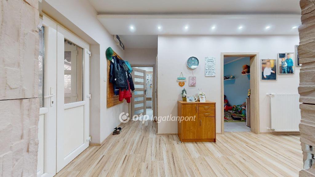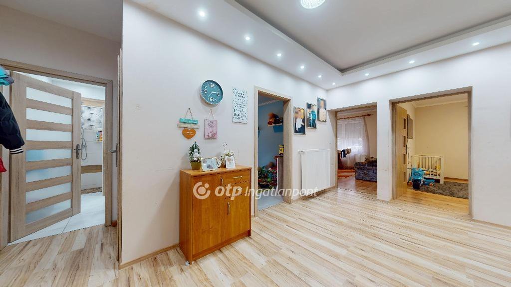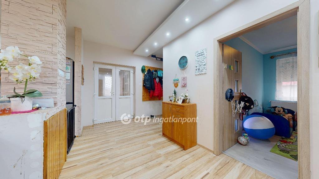 A burkolatok is igényesek és egységesek: a konyha, fürdőszoba, WC és a zárt terasz járólappal fedett, míg a lakótér többi részében meleg hatású laminált padló teszi otthonossá a tereket. Két tágas szoba, egy kisebb gyerekszoba, valamint egy külön kialakított gardróbszoba biztosítja, hogy minden családtagnak jusson saját tér.