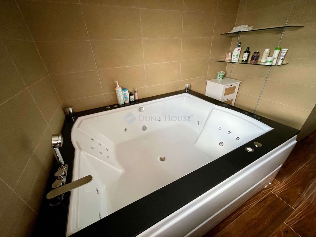 A tágas, napfényes nappali, a külön gardróbszoba, a jakuzzis fürdő, az étkezővel és bárpulttal kialakított elegáns konyha, valamint a több terasz, a gondozott kert mind a kényelmet és az exkluzív életérzést szolgálják.