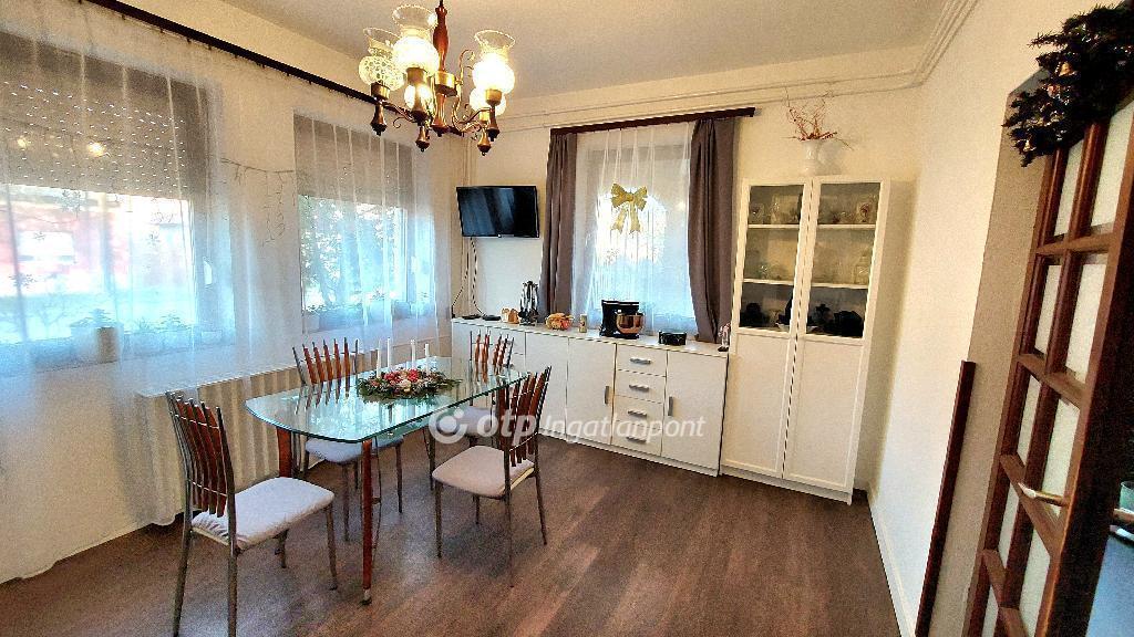 ** CSAK AZ OTP INGATLANPONT KÍNÁLATÁBAN! *** Eladóvá vált egy 1990-ben épült tégla szerkezetű dupla komfortos családi ház a városközpont közelében 734 m2 telken.LIDL, PEPCO, KIK a közelben. A ház tetőtér beépítéses 3 és fél szobás, kiváló elosztásával alkalmas akár egy nagyobb család számára is. A nappaliban hangulatos cserépkályha biztosít kellemes meleget a hidegebb hónapokban, mellette pedig gáz-központi fűtés is üzemel, ami a kényelmet szolgálja. A fa nyílászárók dupla üvegezésűek, redőnnyel felszereltek.