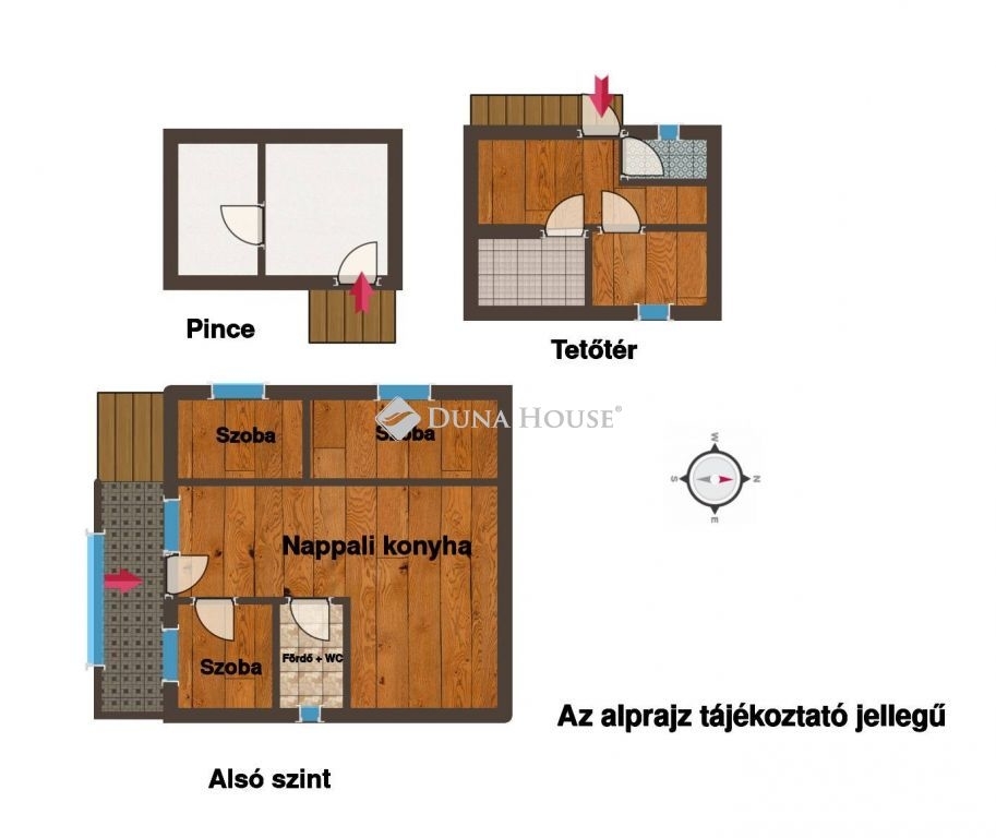 .Van két szintje, egy az alsó 51nm 2 szoba, Nappali + konyha, fürdő 3 WC, előszoba.