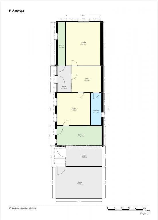 Az ingatlan téglából épült, elrendezése: 3 szoba, előszoba, tároló, fürdő WC-vel és konyha. Fűtése kályhával megoldott (KÁLYHAFŰTÉS). Az egyik szobában látható vízesedés, ezért a ház FELÚJÍTANDÓ állapotú; ugyanakkor a szerkezet jó állapotban van és jó ALAPOKKAL rendelkezik a továbbfejlesztéshez.