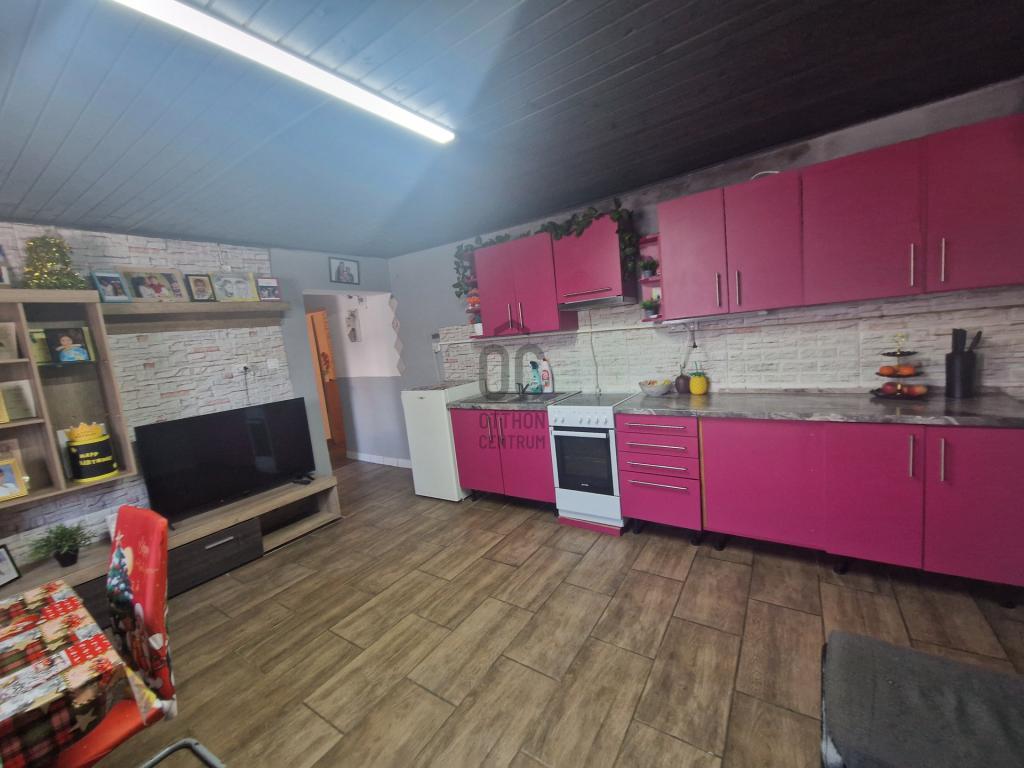 Helyiségek: 3 hálószoba, konyha-étkező-nappali, közlekedő, előszoba, fürdőszoba wc-vel, mosókonyha-kazánház.