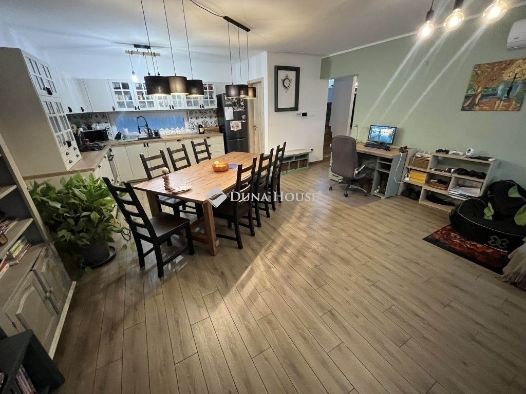 Álomotthon DabasonEladó egy 2021-ben épült, tégla szerkezetű - 20cm szigeteléssel ellátott - ikerház fél Dabas szívében, kiváló fényviszonyokkal és udvari kilátással. A 119 négyzetméteres, összközműves ingatlanban a modern életvitelhez minden adott: gáz cirkó fűtés biztosítja a kellemes hőmérsékletet a hideg hónapokban, míg a nyári melegben 5db klíma hűsíti a szobákat. A 4KW teljesítményű napelem rendszernek és a szigetelésnek köszönhetően az otthon rendkívül energia takarékos. A napelem rendszer akár a duplájára is bővíthető. Az ingatlanhoz 343nm önálló telekrész tartozik.A ház tágas és világos terekkel várja új lakóit. Az amerikai konyhás nappali-étkező beépített, gépesített konyha bútorzata a vételár részét képezi.. A hálószobák a nyugalom szigetei, melyek tökéletes privát teret biztosítanak a pihenéshez.A fürdőszoba modern és elegáns, a legújabb trendeknek megfelelően tervezett. Az udvarban kialakított kert és fedett terasz lehetőséget nyújt kikapcsolódásra és a szabadtéri programokra, ahol a család és barátok együtt tölthetik el az időt.Az otthon és területe teljes mértékben el van szeparálva az ikerház másik részétől.Az udvaron található egy tárolásra, vagy más egyébre is alkalmas mobil épület is. A riasztó rendszer vezetékelése ki van alakítva.Dabas városa ideális választás azon családok számára, akik a városi nyüzsgéstől való távolság mellett is szeretnének minden szükséges infrastruktúrát elérni. Az itt élők élvezhetik a természet közelségét, a csendes, nyugodt környezetet, miközben Budapest csak egy rövid autóútra található. A város számos oktatási, kulturális és sportolási lehetőséget kínál, így mindenki megtalálhatja a számára megfelelő szabadidős tevékenységet.Szakértő munkatársaink a hitelügyintézés teljes folyamatát lebonyolítják Ön helyett díjmentesen!Várom megtisztelő hívását a hét bármely napján!