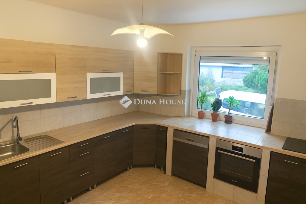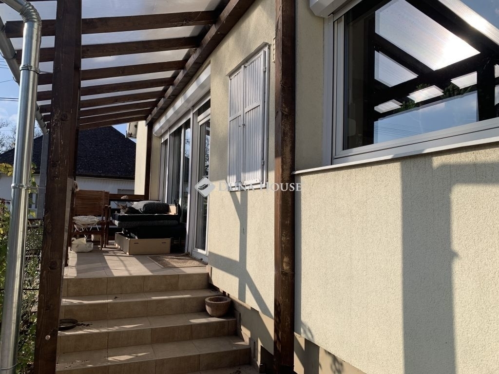 Eladó egy tágas, 185 m²-es családi ház, amely 1985-ben épült beton blokk falazattal, masszív szerkezettel. Az összközműves telek 871 nm nagyságú. Az ingatlan pinceföldszintemelet elrendezésű. A pinceszinten található a garázs, egy tárolóhelyiség, valamint a kazánház, ahol a gázkazán és a villanybojler is elhelyezésre kerültek. A földszinten egy kellemes hangulatú, nagy nappali fogad, innen érhető el az étkező-konyha, a közlekedő, valamint a fürdőszoba, amely zuhannyal és káddal felszerelt. Itt található továbbá egy külön WC, egy kamra, illetve egy külön bejáratú nyári konyha és egy kisebb tároló is.Az emeltre a nappaliból vezet fel a lépcső, ahol egy előtér és három különnyíló szoba kapott helyet. Az előtérből egy kis erkély nyílik, csodás kilátással. Az emeleten a 2 utcafronti szobában két fa szerkezetű tetőablakon keresztül kap bőséges természetes fényt a tér. Szerkezetét tekintve a pince beton födémes, az emelet fafödémmel készült, amelyet 20 cm vastag betonréteg erősít. A tetőszerkezet fa alapú, cserépfedéssel, a külső falak 10 cm-es szigetelést kaptak. A nyílászárók műanyagok, a földszinten redőnnyel ellátva, és több helyen szúnyoghálóval kiegészítve.A fűtésről gáz cirkó gondoskodik radiátoros hőleadással, emellett a nappaliban egy kandalló is található, valamint a földszinten és az emeleten egy-egy hűtő-fűtő klíma biztosít kellemes hőmérsékletet egész évben. A melegvíz ellátásról a gázkazán gondoskodik, de rendelkezésre áll még egy villanybojler is. Az évek során több korszerűsítés történt: 2005 és 2010 között kicserélték a nyílászárókat, megtörtént a hőszigetelés és a homlokzat színezése, 2016-ban pedig megújult a fürdőszoba, a WC és a nappali burkolata.A ház körüli parkosított udvar igazán hangulatos, kis halastóval. Öntözése fúrt kútról történik, a kocsibeálló és az udvari járda térkövezett. Az utcafronton dekoratív, modern lemezborítású kerítés biztosítja az elegáns megjelenést. A házhoz három fedett terasz is tartozik: egy az utcafronton a nappaliból két bejáraton közelíthető meg, egy az udvar felőli oldalon szintén a nappaliból nyílik, valamint egy harmadik, nagy méretű fedett terasz a hátsó bejáratnál kínál kellemes kikapcsolódási lehetőséget. A kertben továbbá több tárolóhely és egy kis fóliasátor is megtalálható.Amennyiben felkeltette érdeklődését az ingatlan, de nem rendelkezik a teljes vételárral, a Credipass hitelügyintéző munkatársai díjmentesen biztosítják a legkedvezőbb, személyre szabott hitelkonstrukciókat a kedves vevők számára.Ha felkeltette az ingatlan az érdeklődését hívjon bizalommal a hét bármely napján! Hibás hirdetés bejelentése