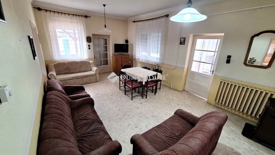 Eladó Dabason egy tégla családi ház csendes zsákutcában, nagy telekkel!Dabas város nyugodt, zsákutcás részén kínálok megvételre egy 1969-ben épült, beton alappal rendelkező, 106 m² alapterületű, tégla szerkezetű családi házat, több mint 1100 m²-es, összközműves telken.Az ingatlan két hálószobával rendelkezik, elosztása jól átgondolt, a terek könnyen alakíthatók, korszerűsíthetők.A házon korábban több műszaki jellegű felújítás is történt:tetőcsere,5 cm-es külső hőszigetelés,kétrétegű üvegezésű, műanyag nyílászárók beépítése,a fürdőszobában a vízvezetékek cseréje és részleges korszerűsítés,a nappaliban padlófűtés került kialakításra, a további helyiségek radiátoros hőleadással fűthetők.A fűtésről vegyes tüzelésű kazán és gázkazán gondoskodik, emellett klímaberendezés is rendelkezésre áll. A kémény révén cserépkályha vagy kandalló kialakítása is megoldható.A telken több melléképület található:közel 19 m²-es garázs szerelőaknával,14,5 m²-es pince,kisebb-nagyobb ólak, tárolók.A kert gondozását fúrt kút segíti. Az ingatlan redőnyökkel felszerelt, az elektromos hálózat 3×16 A kiépítéssel rendelkezik.A tégla szerkezet és a betonalap jó kiindulási alapot biztosít egy hosszú távra tervezett, kényelmes családi otthon kialakításához, mindezt csendes, nyugodt környezetben, mégis Dabas városán belül.Amennyiben hitelre lenne szüksége, kiváló, szakmailag felkészült kollégánkkal a Credipasstól ingyenes és bankfüggetlen szaktanácsadás keretén belül biztosan megtalálják a lehető legkedvezőbb, személyre szabott konstrukciót. További kérdés esetén állok szíves rendelkezésükre hétvégén is, a megadott elérhetőségek bármelyikén.A hirdetésben szereplő FIX 3%-os lakáshitel részét képező támogatásokat Magyarország Kormánya nyújtja.