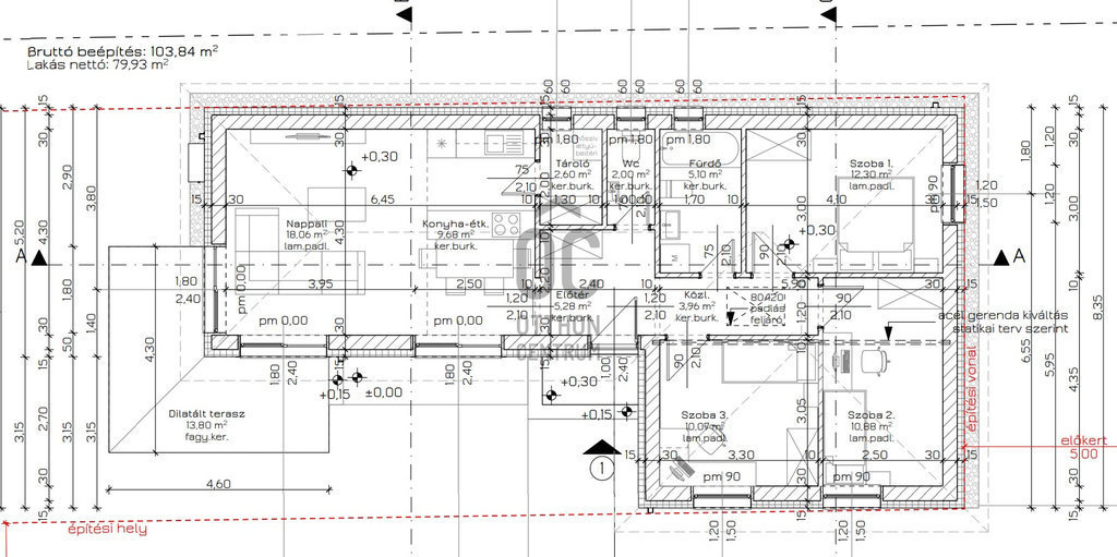 - Külső fal: 30 cm Leier vagy vele egyenértékű tégla +15cm EPS hőszigetelés