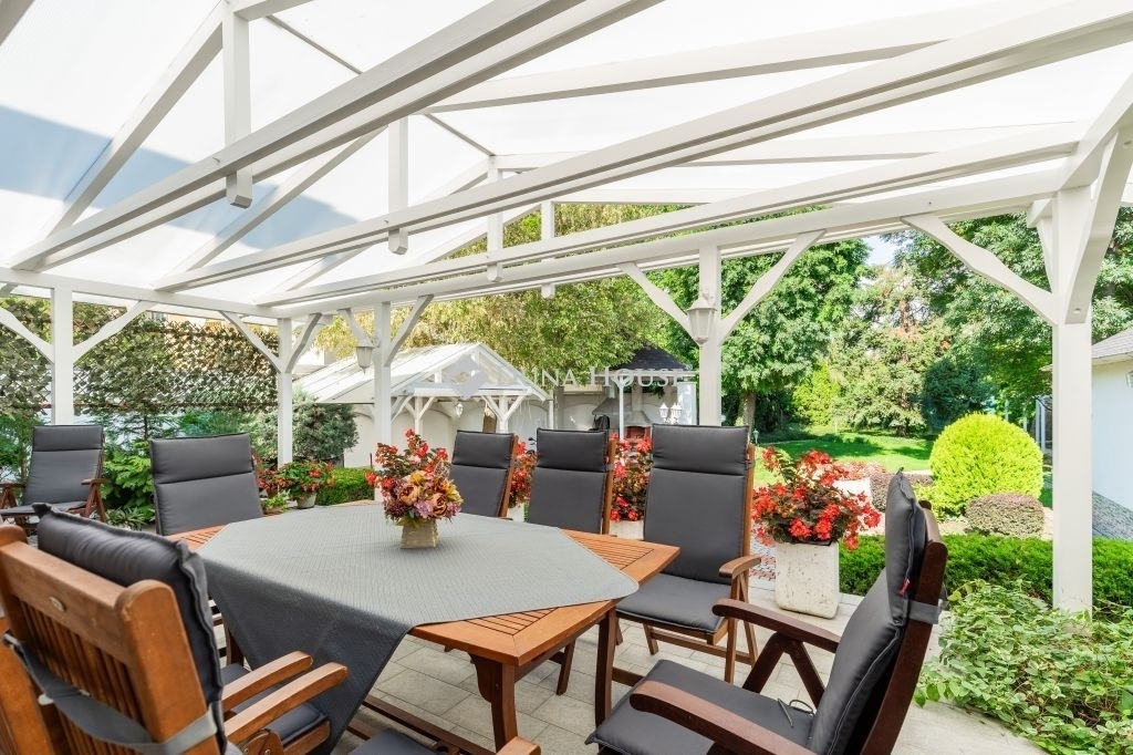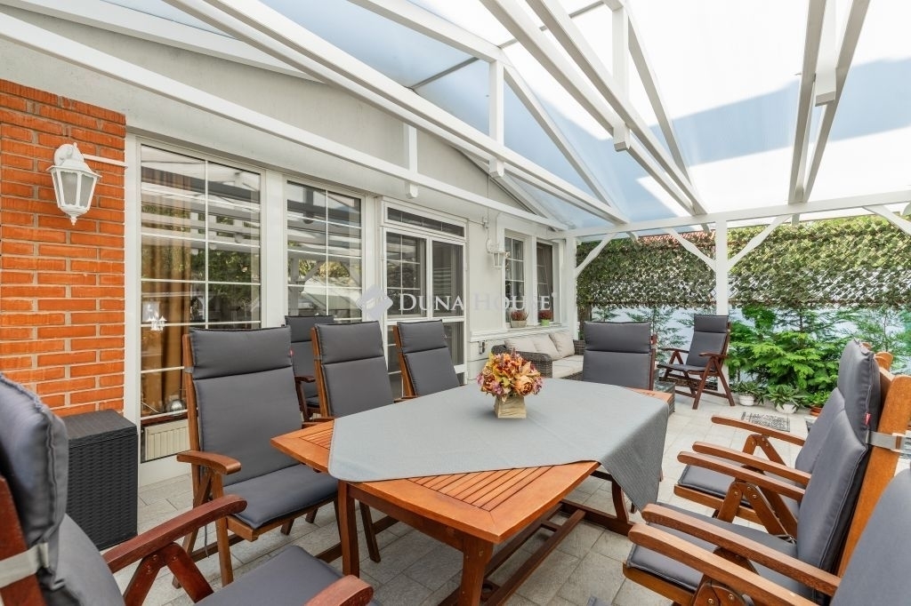 Debrecenben Ritkaság! Impozáns Családi Ház Kastélypark Hangulattal!Eladó egy bruttó 264 m²-es klasszikus eleganciát tükröző családi ház, 1066 m²-es, parkosított, intim kerttel mintha egy kastélyparkban élne, mégis Debrecen szívében!A ház főbb jellemzői:1994-ben épült, tetőtér 1995-ben került beépítésre2024-ben felszerelt napelem áramszámla: 0 Ft!Masszív betonfödém, korszerűsített gépészetVailant kazán (5 éves), külön vezérelhető fűtés a földszinten és emeletenFűtés: földszinten radiátor + 2/3 padlófűtés, emeleten radiátorokFürdőkben 200 literes villanybojler biztosítja a melegvizetAz emeleten légkoncionáló teszi még konfotosabbá a forró nyári napokatKert és extrák:Esőérzékelős automata öntözőrendszer, almérővelFúrt kút (jelenleg nem használt)42 m²-es, kétállásos garázs vízzel és árammal, elektromos kapuvalSzaletli, kerti sütögető és grillFedett, fűthető jakuzzi40 m²-es fedett terasz az étkezőből nyílva, közvetlen kertkapcsolattalNövényekkel befuttatott, rejtett kerti tárolóBelső terek:Földszint: előszoba, nappali + étkezős konyha, dolgozó, gardrób, zuhanyzós fürdő, télikert (jelenleg edzőterem)Emelet: 3 hálószoba, épített zuhanyzós és kádas fürdő, mosókonyha, panorámás terasz a gyönyörű kertreHatalmas terek, szolid elegancia, modern megoldások mindez Debrecen egyik legszebb intim kertjével! Ez az otthon egyszerre nyújt eleganciát, kényelmet és gazdaságos fenntarthatóságot. Hívjon bizalommal, és győződjön meg róla személyesen! Hibás hirdetés bejelentése