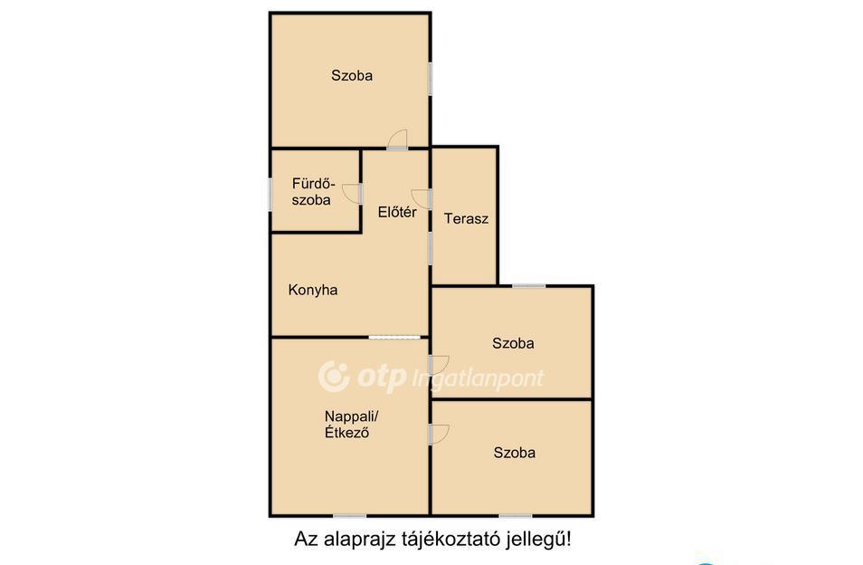 Elrendezését tekintve áll: nappali-étkező-konyha, 3 külön nyíló szoba, előszoba, fürdőszoba WC-vel egy helyiségben, terasz