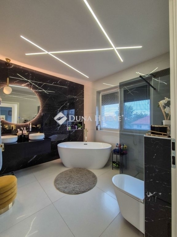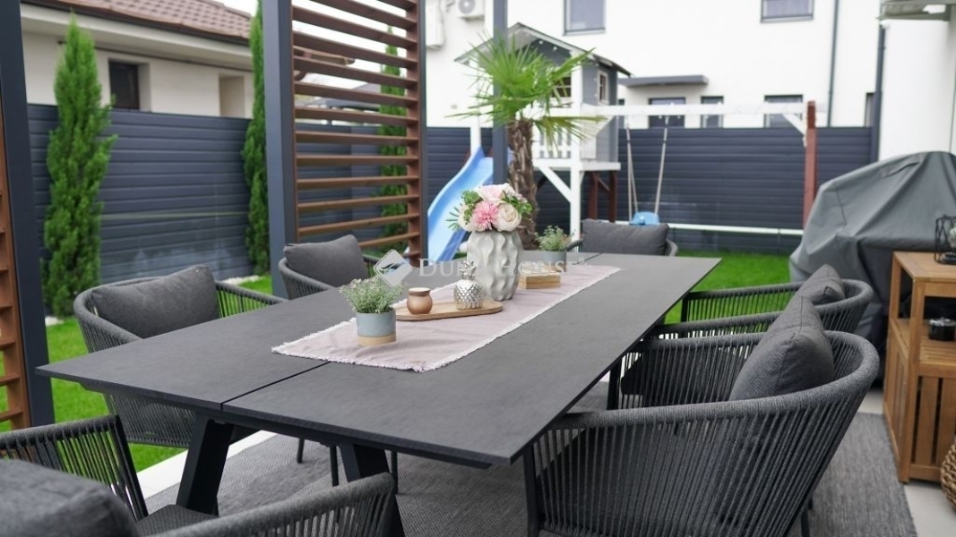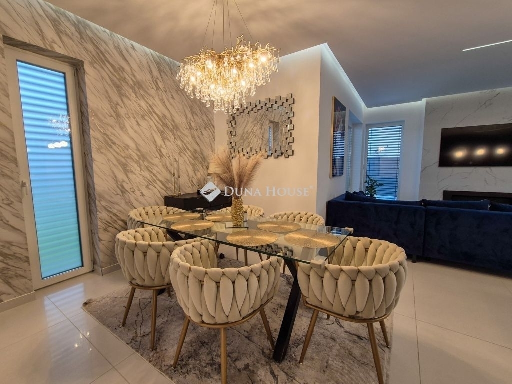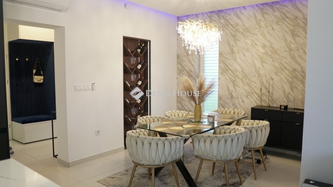 Képzelje el, hogy minden napját egy olyan otthonban kezdi, ahol a nyugalom, a modern luxus és a gondosan megalkotott részletek találkoznak. Egy helyen, ahol a tágas terek, a letisztult elegancia és a családbarát környezet harmóniája teremti meg azt a biztonságot és kényelmet, amelyre annyian vágyunk.Debrecen dinamikusan fejlődő, mégis csendes részén a Boldogfalvi kertben várja Önt ez a 2021-ben épült, prémium minőségű családi ház, amely minden szempontból a minőségi életet szolgálja.A bruttó 132 nm-es, nettó 108 nm-es lakótér tágas, egy légtérben kialakított nappali-konyha-étkezővel, három különálló hálószobával, elegáns fürdőszobával, két toalettel és nyárikonyhával (mely rendelkezik még egy fürdőszobával) ad otthont a mindennapoknak.A Wellis fürdő, az egyedi kvarckő konyhapult, a padlófűtés és a prémium anyaghasználat olyan luxust adnak, amelyet minden nap érezni fog.A nappaliból kilépve egy 24 nm-es fedett terasz fogadja, ahonnan rálátni a gondosan megtervezett díszkertre és a kert ékszerére: a fűthető, exkluzív, szuperlapos és törhetetlen fedéssel ellátott, 8×3 m-es medencére. A különálló nyári konyha és a kültéri zuhanyzóval ellátott WC tökéletes hátteret ad a családi összejöveteleknek, nyári estéknek, baráti vacsoráknak.A ház minden részlete a modern élet kényelmét tükrözi:elektromos zsalúzia, alumínium redőnyök, távirányítható kapu, videókaputelefon, CCTV rendszer, automata öntözőrendszer, fűthető garázs, Gree inverteres klímák mindez azért, hogy Önnek csak élveznie kelljen a gondtalan hétköznapokat.Ez az otthon készen áll arra, hogy egy új történet helyszíne legyen. Egy olyan történeté, amelyben a nyugalom, a kényelem és a prémium életérzés nem kiváltság, hanem a mindennapok természetes része. És ami még különlegesebbé teszi: az ingatlan szinte teljes bútorzattal eladó, így valóban csak a bőröndjét kell hoznia.Megtekintéssel kapcsolatban keressen bizalommal - örömmel segítek.Eladó ingatlanok Debrecenben, a legnagyobb számban a Duna House kínálatában!Hitelre van szüksége? Vegye igénybe Credipass szolgáltatásunkat, szakmailag magasan képzett tanácsadónk segítségét!Vásárlóink részére minden szolgáltatásunk ingyenes.www.dh.hu Hibás hirdetés bejelentése